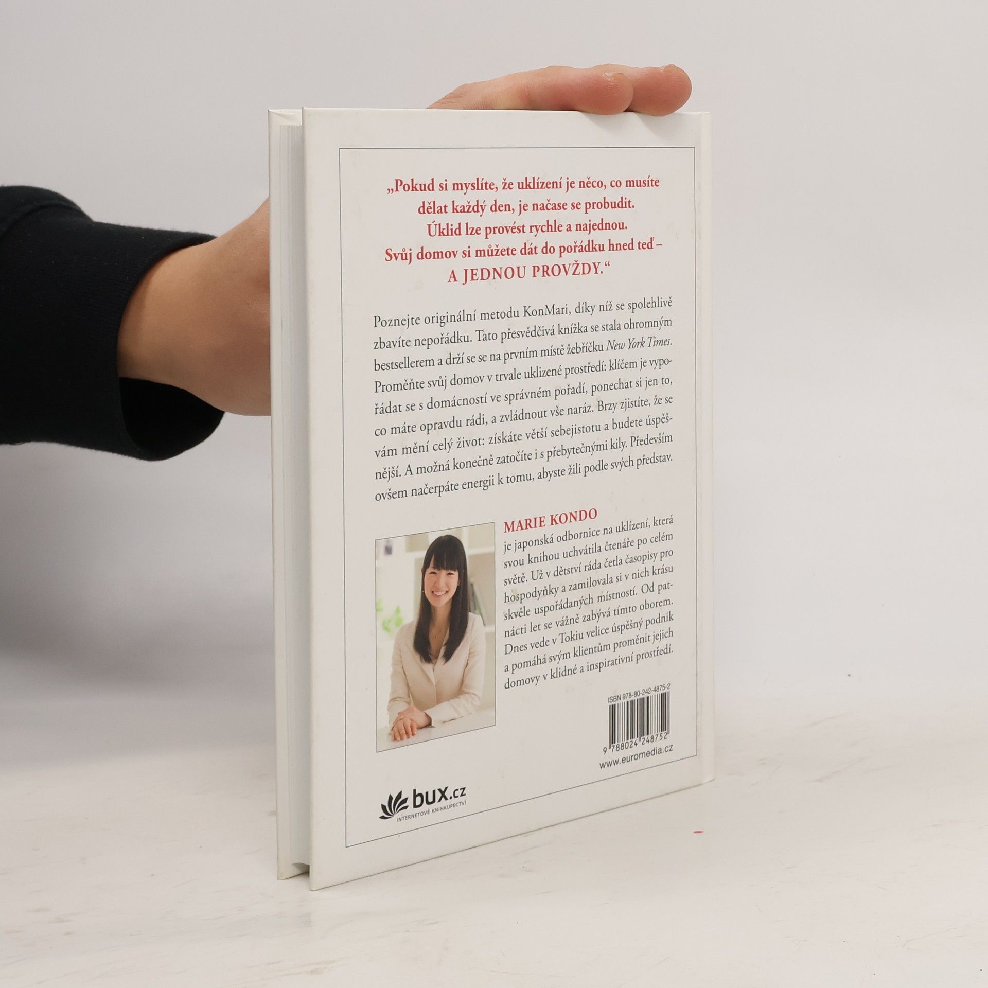 Poznejte originální umění, díky němuž se spolehlivě zbavíte nepořádku a náležitě si uspořádáte věci. Tato přesvědčivá knížka se právem stala ohromným bestsellerem po celém světě a vyšvihla se na první místo žebříčku New York Times. Proměňte svůj domov pomocí autorčiny inspirativní metody v trvale uklizené prostředí: klíčem je vypořádat se s domácností ve správném pořadí, ponechat si jen to, co opravdu milujete, a udělat vše rychle. Změníte tak svůj život – získáte větší sebejistotu, budete úspěšnější a možná i konečně zatočíte s přebytečnými kily. A především načerpáte energii k tomu, abyste žili podle svých představ.