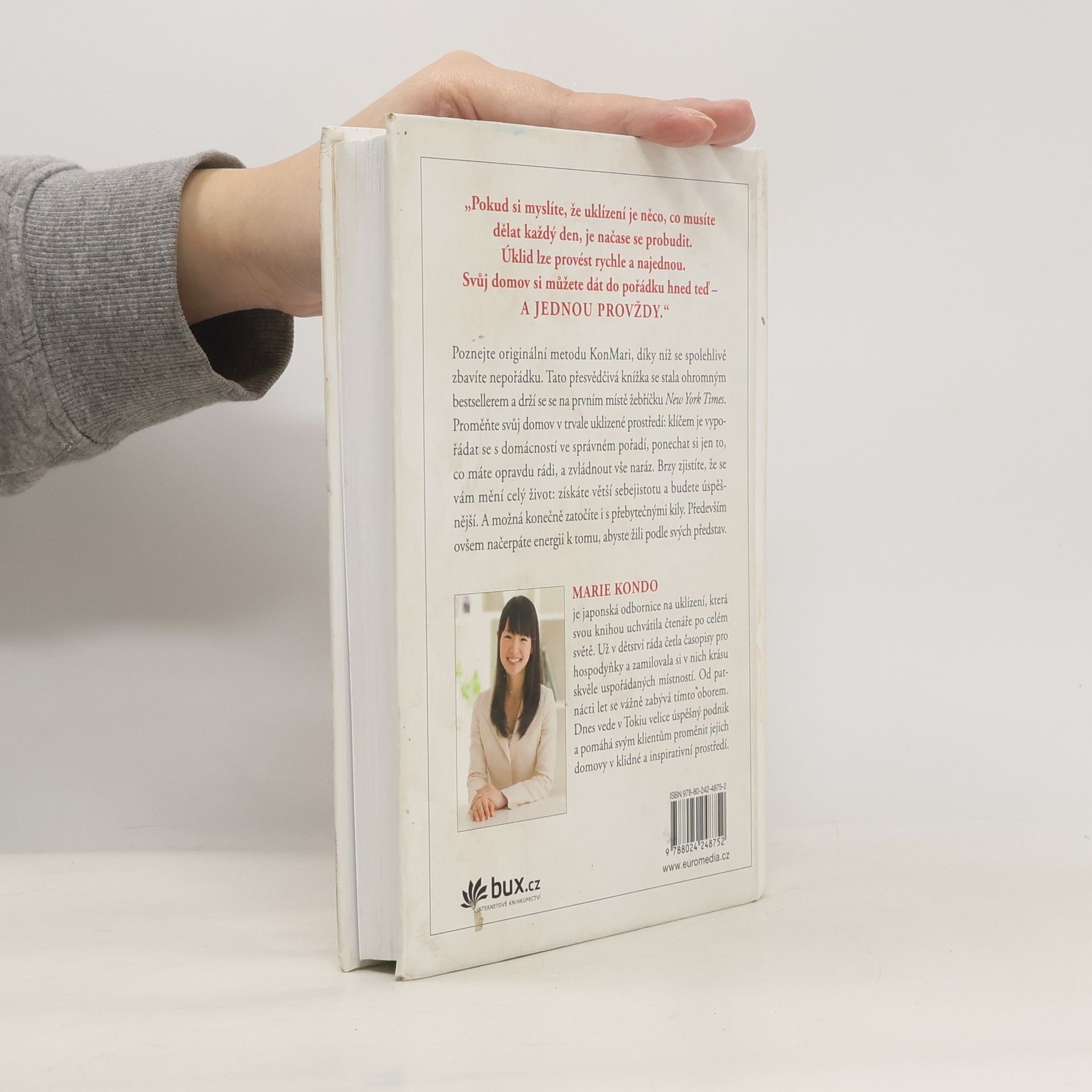 Poznejte originální umění, díky němuž se spolehlivě zbavíte nepořádku a náležitě si uspořádáte věci. Tato přesvědčivá knížka se právem stala ohromným bestsellerem po celém světě a vyšvihla se na první místo žebříčku New York Times. Proměňte svůj domov pomocí autorčiny inspirativní metody v trvale uklizené prostředí: klíčem je vypořádat se s domácností ve správném pořadí, ponechat si jen to, co opravdu milujete, a udělat vše rychle. Změníte tak svůj život – získáte větší sebejistotu, budete úspěšnější a možná i konečně zatočíte s přebytečnými kily. A především načerpáte energii k tomu, abyste žili podle svých představ.