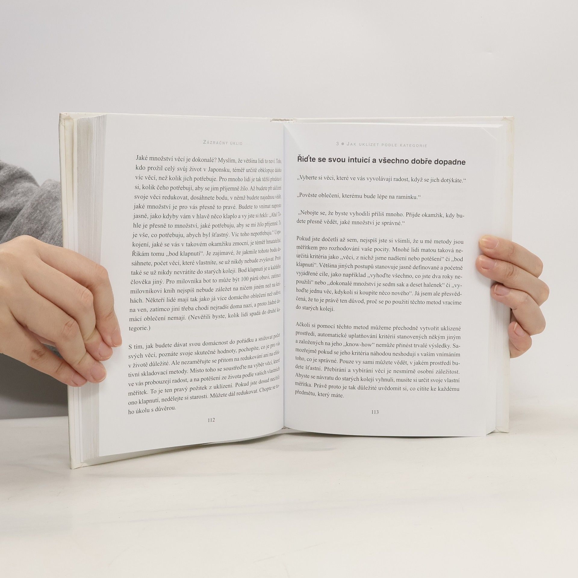 Táto kniha sa mi veľmi ľahko čítala. Mala som ju prečítanú za dve poobedia. Zmenila môj pohľad na vnímanie toho ako sa správam ku veciam, na čom mi záleží a čo všetko doma mám bez toho aby som o tom vedela. Tiež ma zbavila pocitu viny z toho keď som niečo darovala alebo vyhodila. Cítim sa ľahšie a lepšie a už som začala so svojim úklidom. Teším sa keď bude hotový. Odporučila by som ju každému kto chce dostať svoj život pod kontrolu.