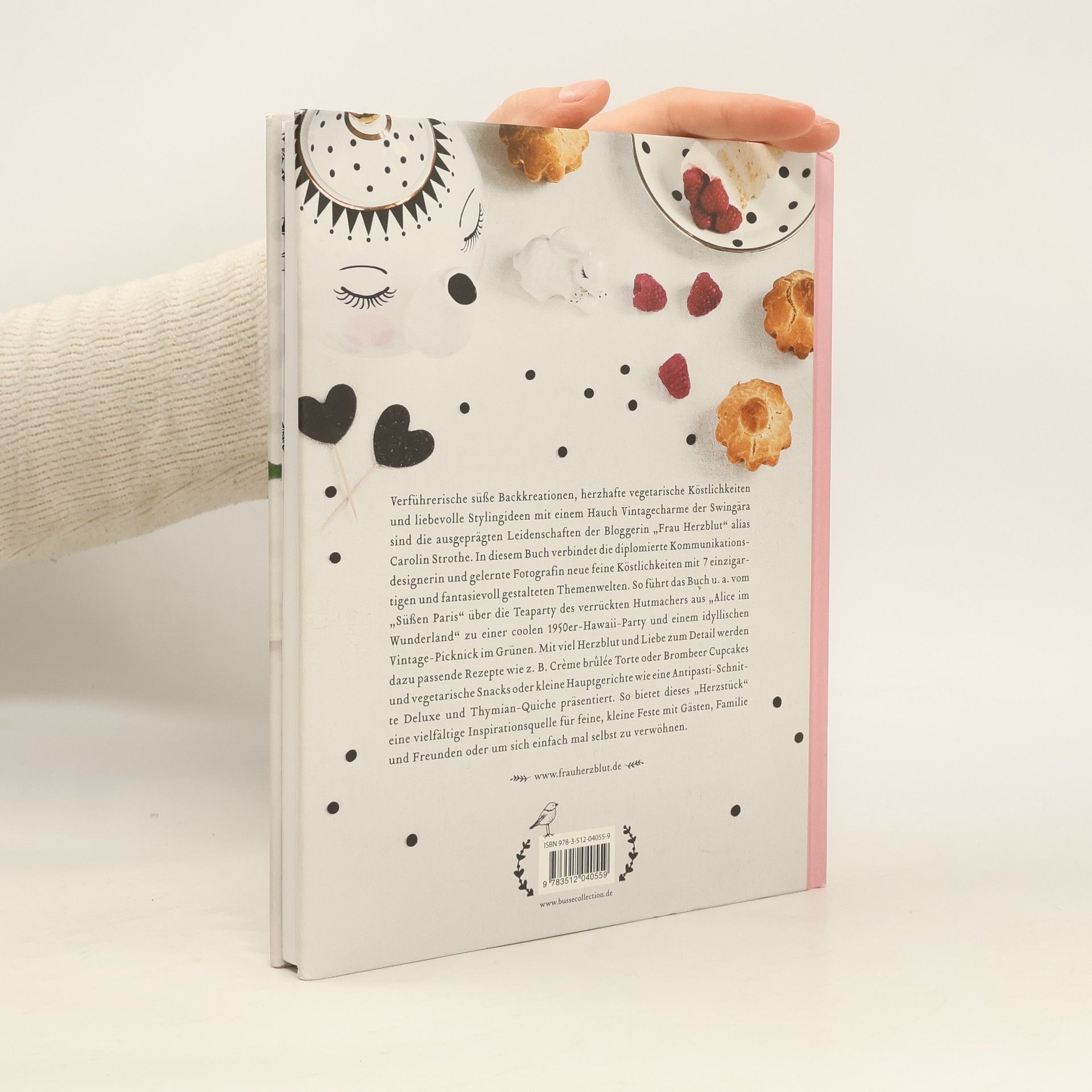 Die Bloggerin Carolin Strothe alias „Frau Herzblut“ präsentiert in ihrem ersten Back- und Kochbuch 7 fantasievoll gestaltete Genuss-Themenwelten mit vielen süßen, herzhaften und vegetarischen Köstlichkeiten und einem Hauch Vintage-Charme. Beginnend im „süßen Paris“, führt das Buch u. a. von der Teaparty des verrückten Hutmachers aus „Alice im Wunderland“ zu einer 1950er-Hawaii-Party und einem Vintage Picknick im Grünen. Dazu passende Rezeptideen wie Crème brûlée Torte, Brombeer Cupcakes, Exotic-Veggie-Burger, Antipasti-Schnitte Deluxe und Ingwerbier sind nicht nur eine wahre Gaumenfreude, sondern auch ein ästhetischer Hochgenuss. Ein feines, kleines Fest der Sinne!