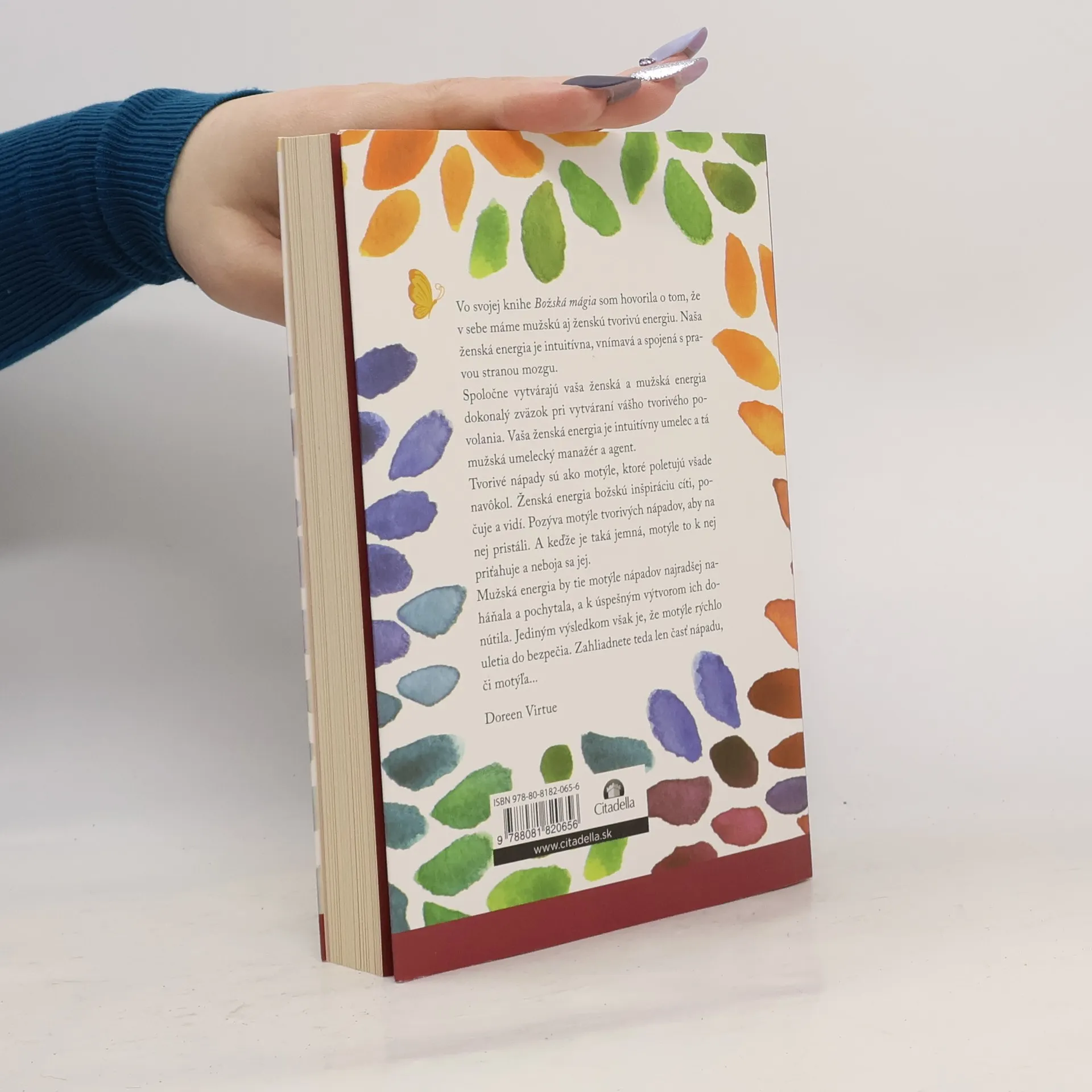 Vo svojej knihe Božská mágia som hovorila o tom, že v sebe máme mužskú aj ženskú tvorivú energiu. Naša ženská energia je intuitívna, vnímavá a spojená s pravou stranou mozgu. Spoločne vytvárajú vaša ženská a mužská energia dokonalý zväzok pri vytváraní vášho tvorivého povolania. Vaša ženská energia je intuitívny umelec a tá mužská umelecký manažér a agent. Tvorivé nápady sú ako motýle, ktoré poletujú všade navôkol. Ženská energia božskú inšpiráciu cíti, počuje a vidí. Pozýva motýle tvorivých nápadov, aby na nej pristáli. A keďže je taká jemná, motýle to k nej priťahuje a neboja sa jej. Mužská energia by tie motýle nápadov najradšej naháňala a pochytala, a k úspešným výtvorom ich donútila. Jediným výsledkom však je, že motýle rýchlo uletia do bezpečia. Zahliadnete teda len časť nápadu, či motýľa... Doreen Virtue