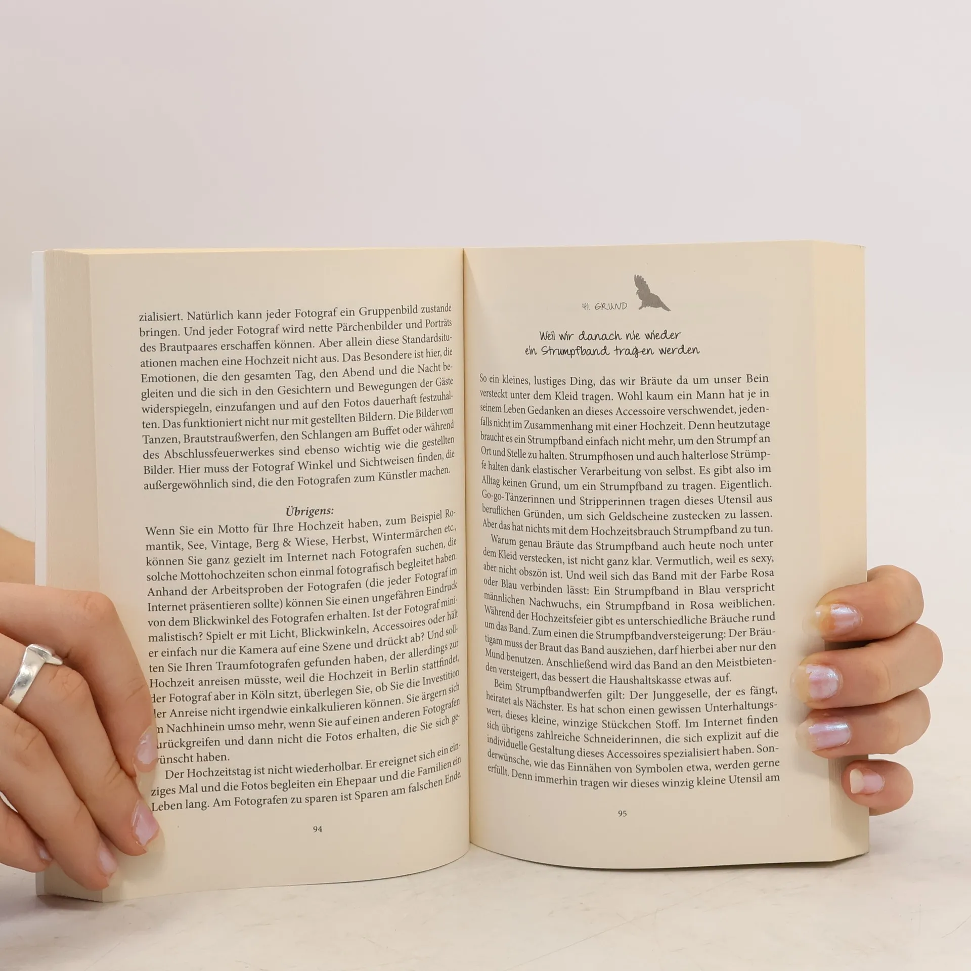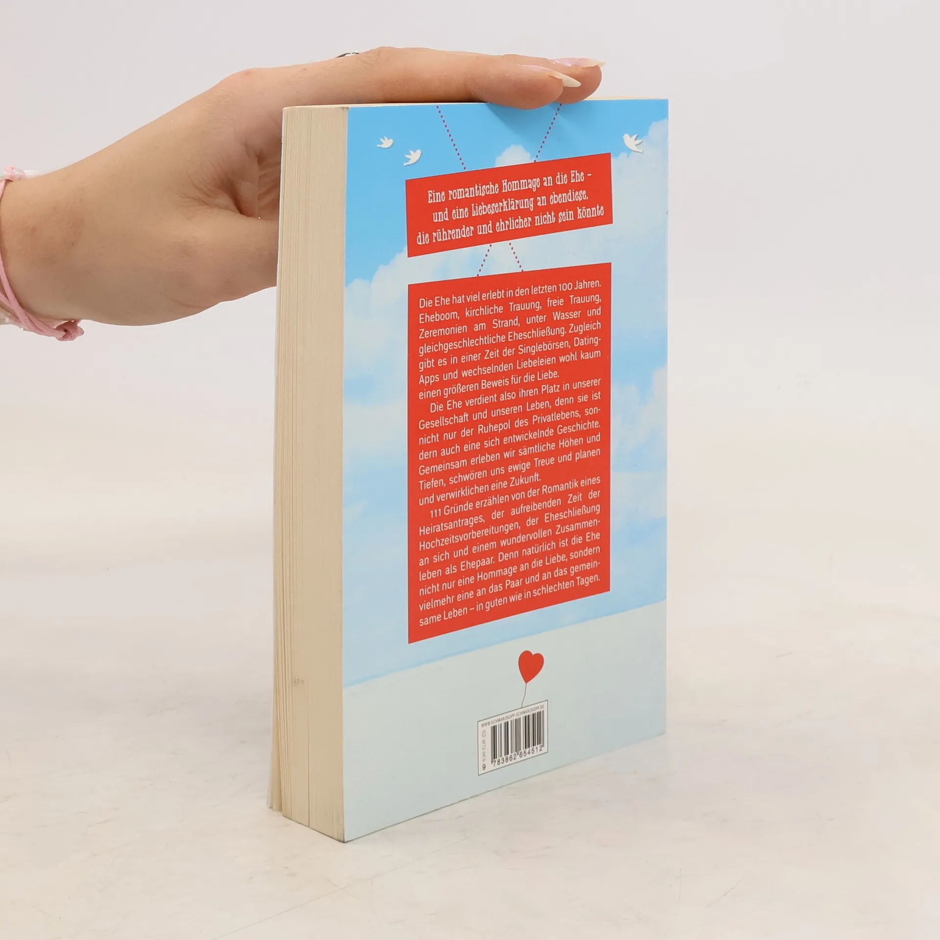 Die Ehe hat viel erlebt in den letzten hundert Jahren. Eheboom, Scheidungsboom, kirchliche Trauung, freie Trauung, Zeremonien am Strand, unter Wasser und gleichgeschlechtliche Eheschließung. Fest steht auch, die Ehe hat einen Rückgang ihrer Zahlen erfahren und jede dritte Ehe wird heute wieder geschieden. Weshalb dem so ist, davon soll dieses Buch nicht handeln. Es handelt von 111 Gründen für die Ehe. Wegen guter und gerade wegen schlechter Zeiten. Es handelt von der Romantik eines Heiratsantrages, der aufreibenden Zeit der Hochzeitsvorbereitungen, der Eheschließung an sich und einem wundervollen Zusammenleben als Ehepaar. Natürlich ist das Heiraten eine hochromantische Angelegenheit, und dieses Buch bietet mehr als nur eine Gelegenheit, um Tränchen zu verdrücken. Aber es erzählt auch von sehr realistischen Gründen, zu heiraten. Weil wir es besser machen wollen zum Beispiel. Weil wir einen gemeinsamen Namen tragen wollen. Oder einfach, weil es um Schuhe geht.