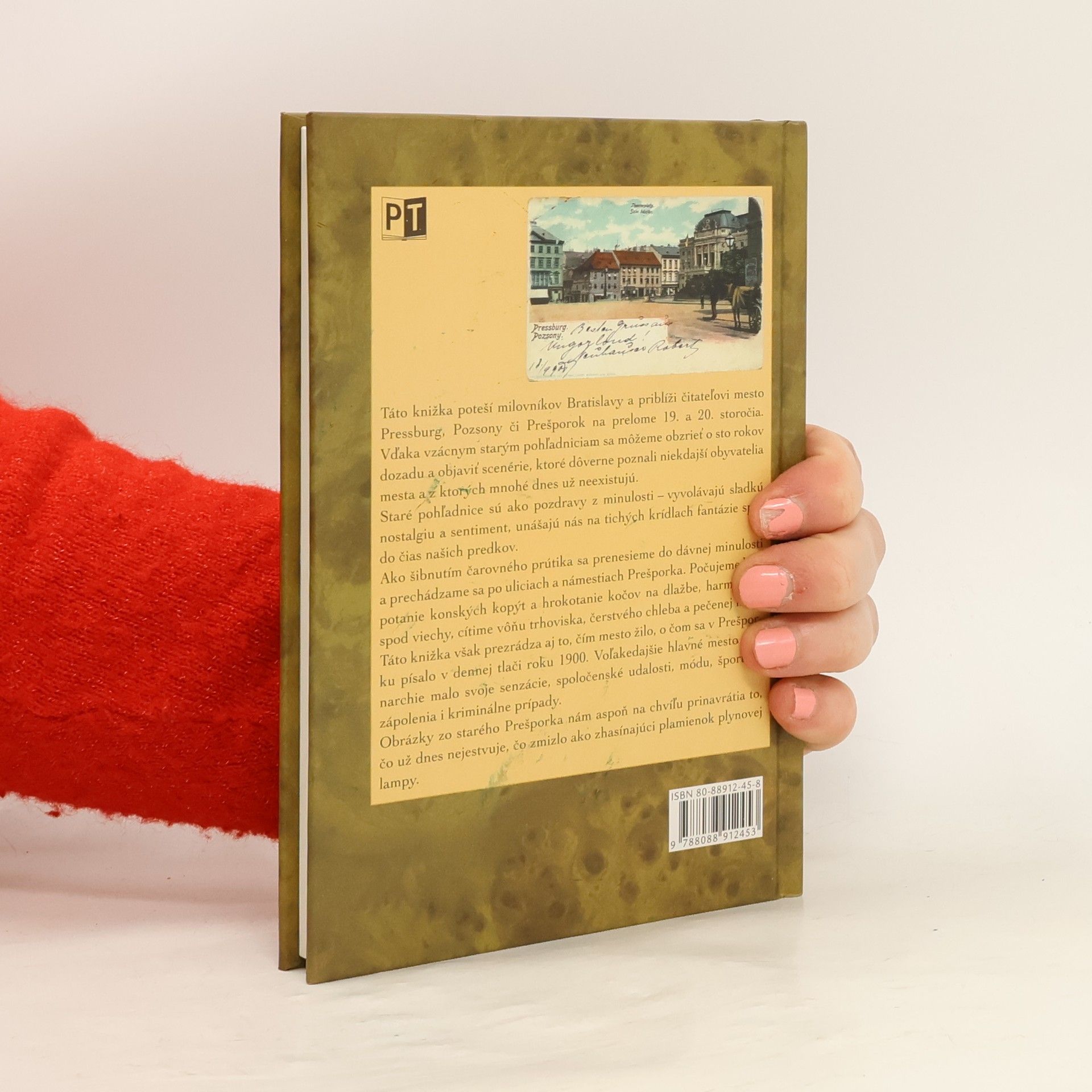 Táto knižka poteší milovníkov Bratislavy a priblíži čitateľovi mesto Pressburg, Pozsony či Prešporok na prelome 19. a 20. storočia. Vďaka vzácnym starým pohľadniciam sa môžeme obzrieť o sto rokov späť a objaviť scenérie, ktoré dôverne poznali niekdajší obyvatelia mesta, a z ktorých mnohé dnes už neexistujú. Staré pohľadnice sú ako pozdravy z minulosti vyvolávajúce sladkú nostalgiu a sentiment, unášajú nás na tichých krídlach fantázie späť do čias našich predkov. Ako šibnutím čarovného prútika sa prenesieme do dávnej minulosti a prechádzame sa po uliciach a námestiach Prešporka. Počujeme klopotanie konských kopýt a hrokotanie kočov na dlažbe, harmoniku spod viechy, cítime vôňu trhoviska, čerstvého chleba a pečenej husi. Táto knižka však prezrádza aj to, čím mesto žilo, o čom sa v Prešporku písalo v dennej tlači roku 1900. Voľakedajšie hlavné mesto monarchie malo svoje senzácie, spoločenské udalosti, módu, športové zápolenia i kriminálne prípady. Obrázky zo starého Prešporka nám aspoň na chvíľu prinavrátia to, čo už dnes nejestvuje, čo zmizlo ako zhasínajúci plamienok plynovej lampy.