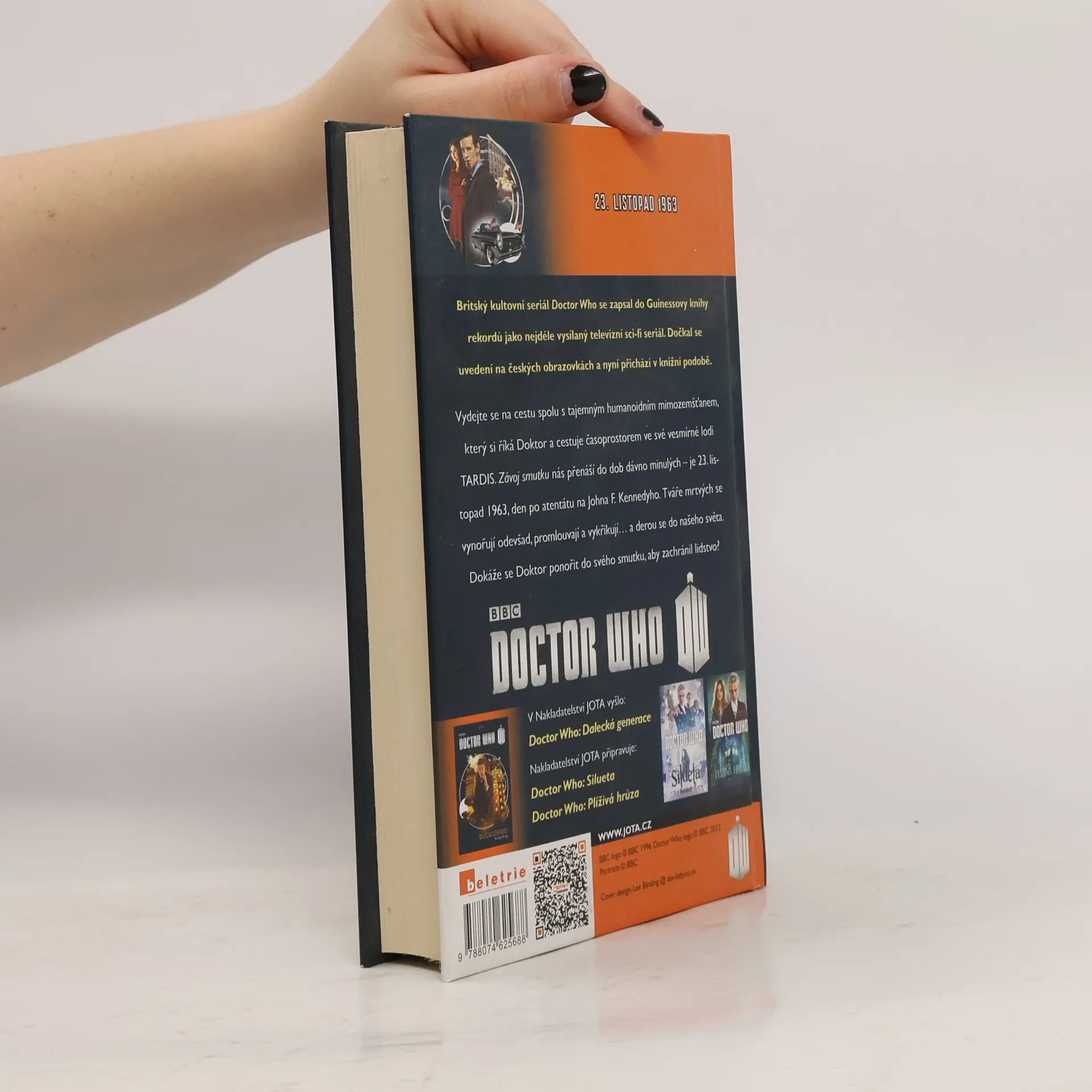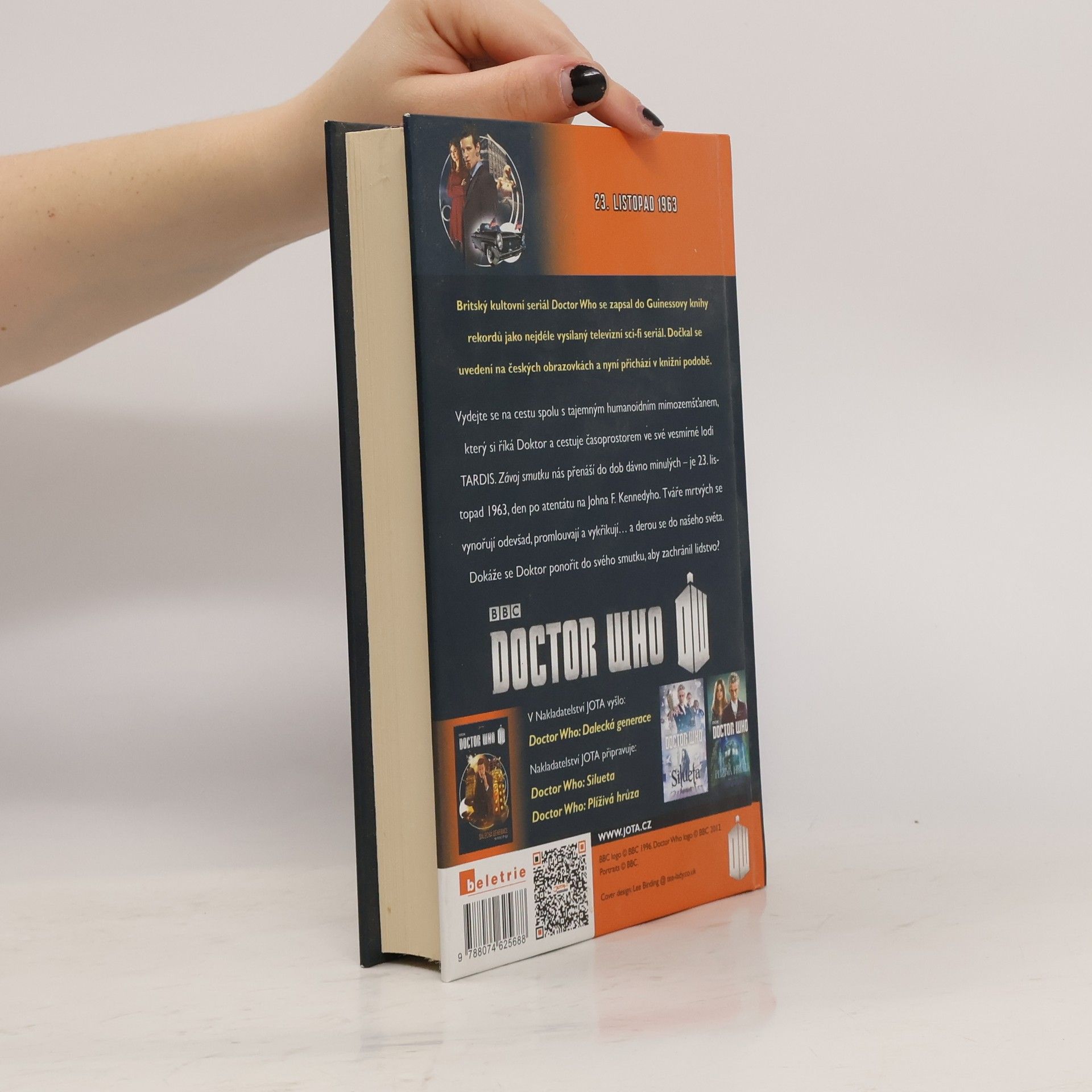 Britský kultovní seriál Doctor Who se zapsal do Guinessovy knihy rekordů jako nejdéle vysílaný televizní sci-fi seriál. Dočkal se uvedení na českých obrazovkách a nyní přichází v knižní podobě. Vydejte se na cestu spolu s tajemným humanoidním mimozemšťanem, který si říká Doktor a cestuje časoprostorem ve své vesmírné lodi TARDIS. Závoj smutku nás přenáší do dob dávno minulých – je 23. listopad 1963, den po zabití Johna F. Kennedyho. Tváře mrtvých se noří odevšad, začínají mluvit a křičet… a cpát se do našeho světa. Dokáže se Doktor ponořit do svého smutku, aby zachránil lidstvo?