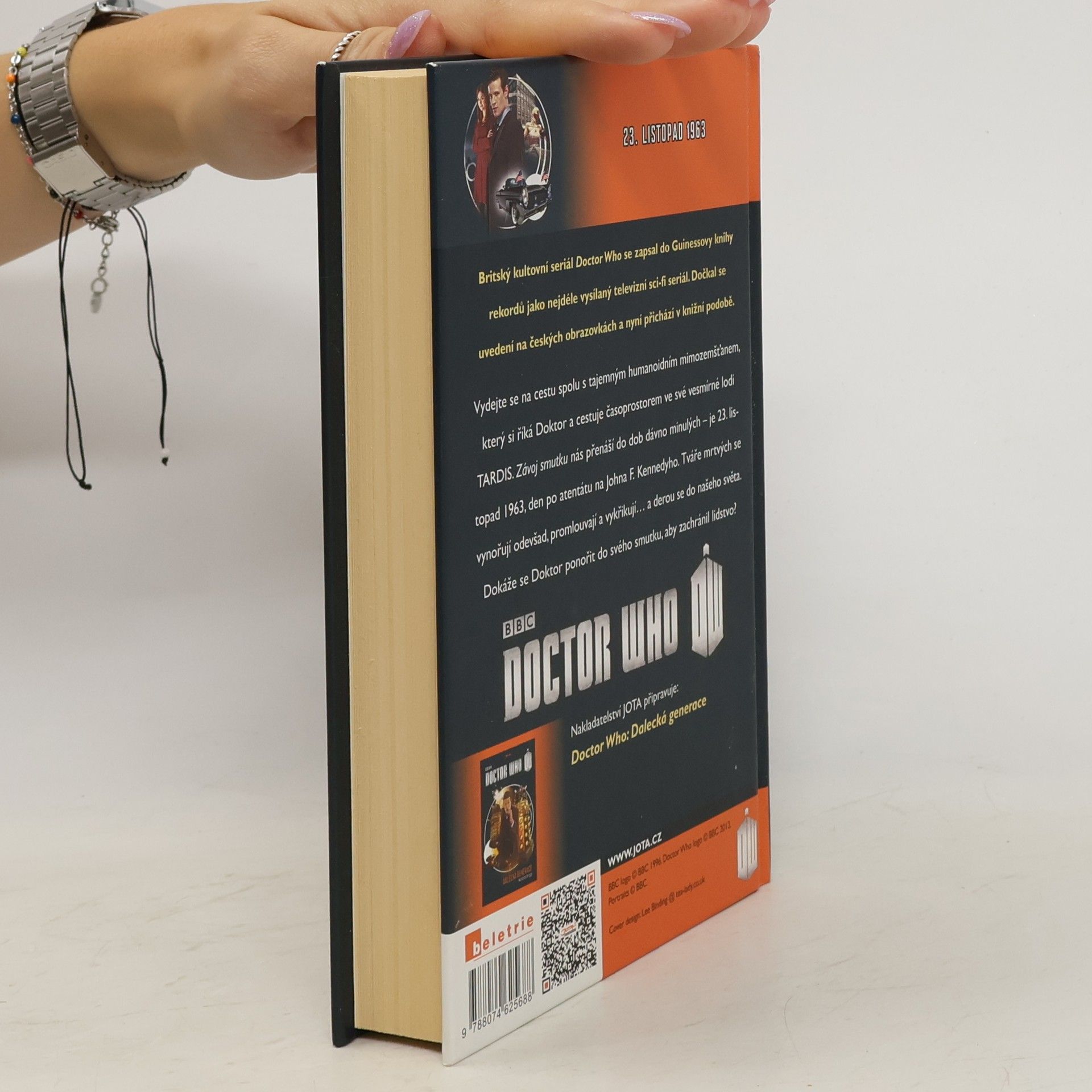 Britský kultovní seriál Doctor Who se zapsal do Guinessovy knihy rekordů jako nejdéle vysílaný televizní sci-fi seriál. Dočkal se uvedení na českých obrazovkách a nyní přichází v knižní podobě. Vydejte se na cestu spolu s tajemným humanoidním mimozemšťanem, který si říká Doktor a cestuje časoprostorem ve své vesmírné lodi TARDIS. Závoj smutku nás přenáší do dob dávno minulých – je 23. listopad 1963, den po zabití Johna F. Kennedyho. Tváře mrtvých se noří odevšad, začínají mluvit a křičet… a cpát se do našeho světa. Dokáže se Doktor ponořit do svého smutku, aby zachránil lidstvo?