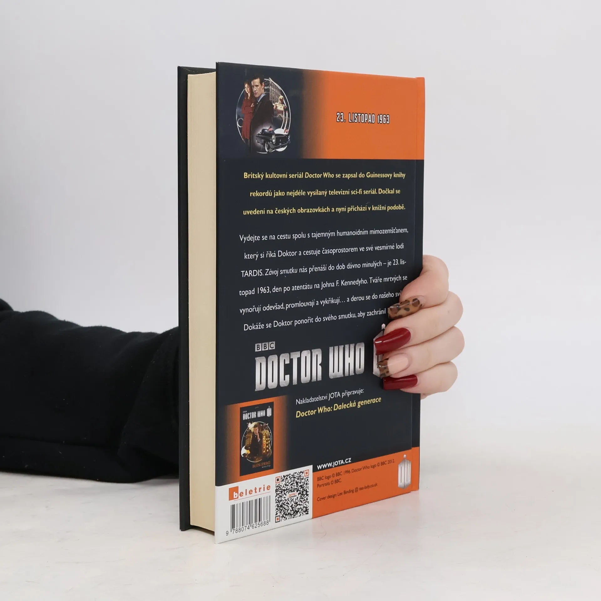 Britský kultovní seriál Doctor Who se zapsal do Guinessovy knihy rekordů jako nejdéle vysílaný televizní sci-fi seriál. Dočkal se uvedení na českých obrazovkách a nyní přichází v knižní podobě. Vydejte se na cestu spolu s tajemným humanoidním mimozemšťanem, který si říká Doktor a cestuje časoprostorem ve své vesmírné lodi TARDIS. Závoj smutku nás přenáší do dob dávno minulých – je 23. listopad 1963, den po zabití Johna F. Kennedyho. Tváře mrtvých se noří odevšad, začínají mluvit a křičet… a cpát se do našeho světa. Dokáže se Doktor ponořit do svého smutku, aby zachránil lidstvo?