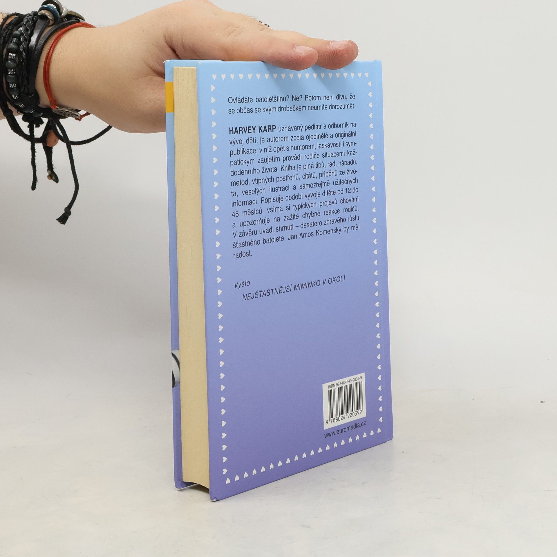Harvey Karp, uznávaný pediatr a odborník na vývoj dětí, je autorem zcela ojedinělé a originální publikace, v níž opět s humorem, laskavostí i sympatickým zaujetím provádí rodiče situacemi každodenního života. Kniha je plná tipů, rad, nápadů, metod, vtipných postřehů, citátů, příběhů ze života, veselých ilustrací a samozřejmě užitečných informací. Popisuje období vývoje dítěte od 12 do 48 měsíců, všímá si typických projevů chování a upozorňuje na zažité chybné reakce rodičů. V závěru uvádí shrnutí - desatero zdravého růstu šťastného batolete. Jan Amos Komenský by měl radost.