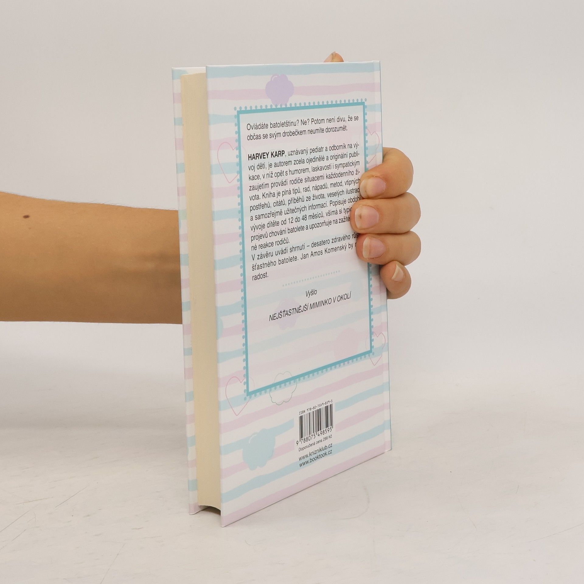 Harvey Karp, uznávaný pediatr a odborník na vývoj dětí, je autorem zcela ojedinělé a originální publikace, v níž opět s humorem, laskavostí i sympatickým zaujetím provádí rodiče situacemi každodenního života. Kniha je plná tipů, rad, nápadů, metod, vtipných postřehů, citátů, příběhů ze života, veselých ilustrací a samozřejmě užitečných informací. Popisuje období vývoje dítěte od 12 do 48 měsíců, všímá si typických projevů chování a upozorňuje na zažité chybné reakce rodičů. V závěru uvádí shrnutí - desatero zdravého růstu šťastného batolete. Jan Amos Komenský by měl radost.