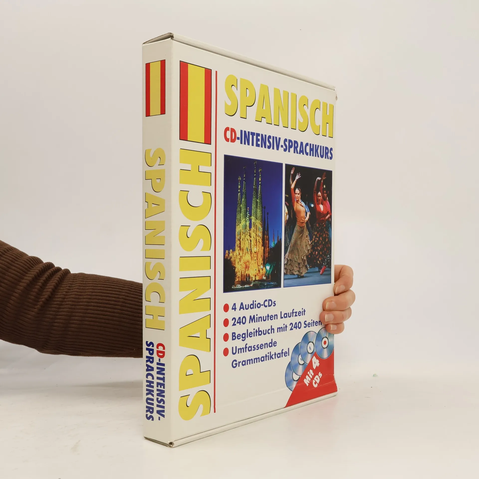 Tato učebnice španělského jazyka se 4 CD je určena nejen těm, kteří se teprve začínají učit španělsky, ale i všem, kteří si chtějí své znalosti španělštiny oživit. Na 4 CD najdete živé a autentické rozhovory v každodenních situacích. Rozhovory nahráli rodilí mluvčí. Učebnice obsahuje cvičení i se správnými řešeními, poslechová cvičení a nahrávky her a také vysvětlení základních gramatických jevů. Souhrnný přehled gramatiky najdete v přiložené tabulce. Vyhledávání jednotlivých nahrávek je velmi jednoduché. Učebnice nabízí nejen psanou verzi všech rozhovorů a jejich překlady do češtiny, ale také celou řadu různých poslechových cvičení, vysvětlení důležitých gramatických jevů a příkladů jejich správného používání. Obsah balení: - 4 CD s rozhovory a nahrávkami - 240 minut - Učebnice s 33 lekcemi - 240 stran - Gramatická tabulka