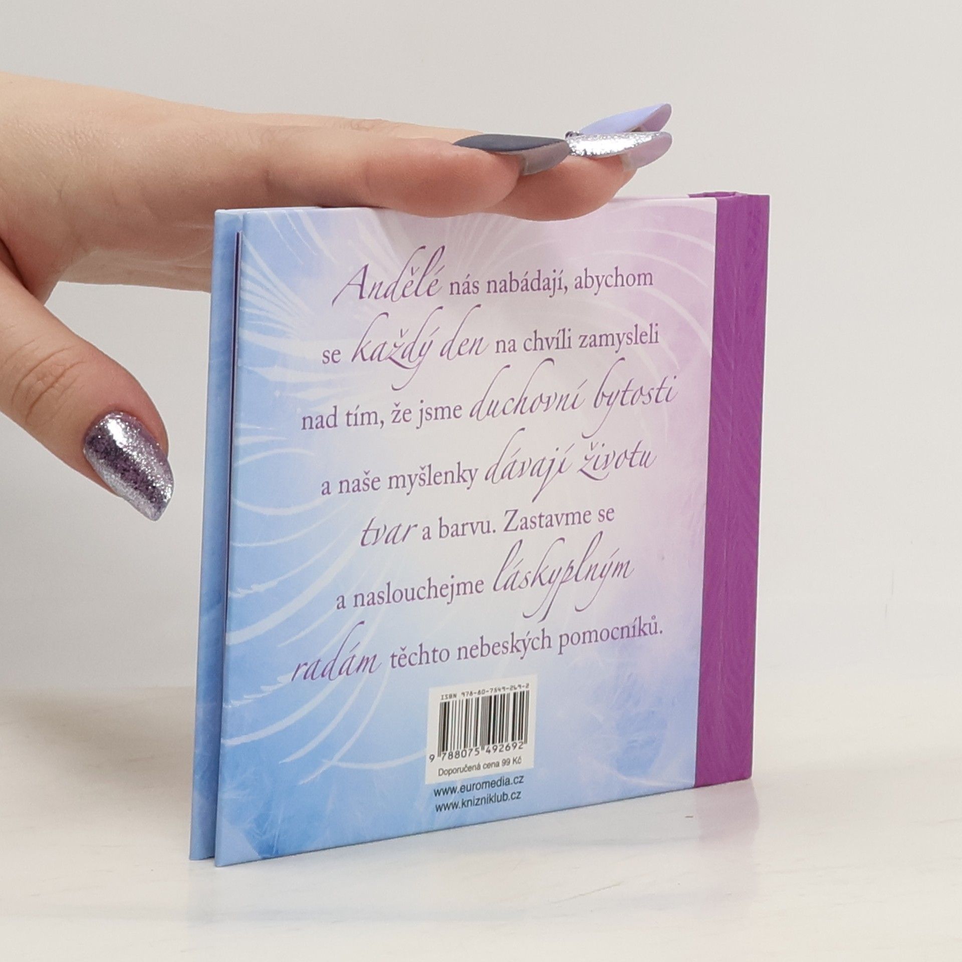Andělé nás nabádají, abychom se každý den na chvíli zamysleli nad tím, že jsme duchovní bytosti a naše myšlenky dávají životu tvar a barvu. Zastavme se s touto krásnou dárkovou knížkou plnou povzbuzujících slov a naslouchejme láskyplným radám nebeských pomocníků.
