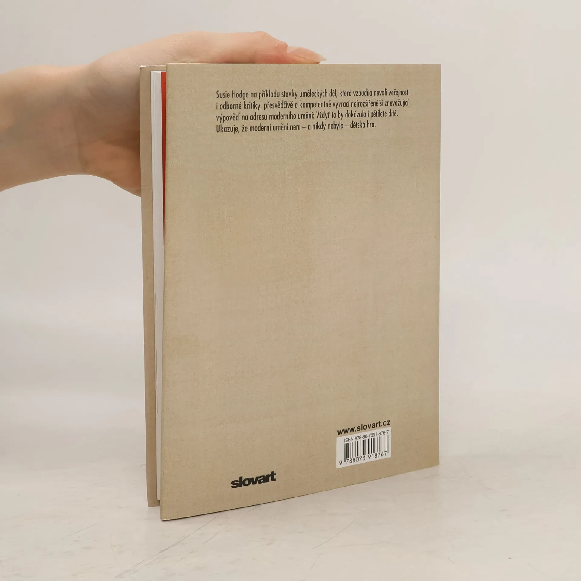 100 moderních děl od Muncha po street art. Když se někdy díváme na některé dílo abstraktního uměni, utrousíme: Tohle by přece zvládlo pětileté dítě. Autorka odhaluje pomýlenost takového pocitu a vysvětluje, že nejlepší díla moderního umění jsou ve skutečnosti výsledkem složitých úvah a výjimečného uměleckého talentu. Od proslulé Duchampovy Fontány přes čmáranice Cyho Twomblyho po Marka Rothka a minimalismus se Susie Hodge obrací na rozhořčené kritiky a přináší jim důkazy o řemeslné zručnosti, promyšlené ideji a inspiraci, která stojí za každým dílem.