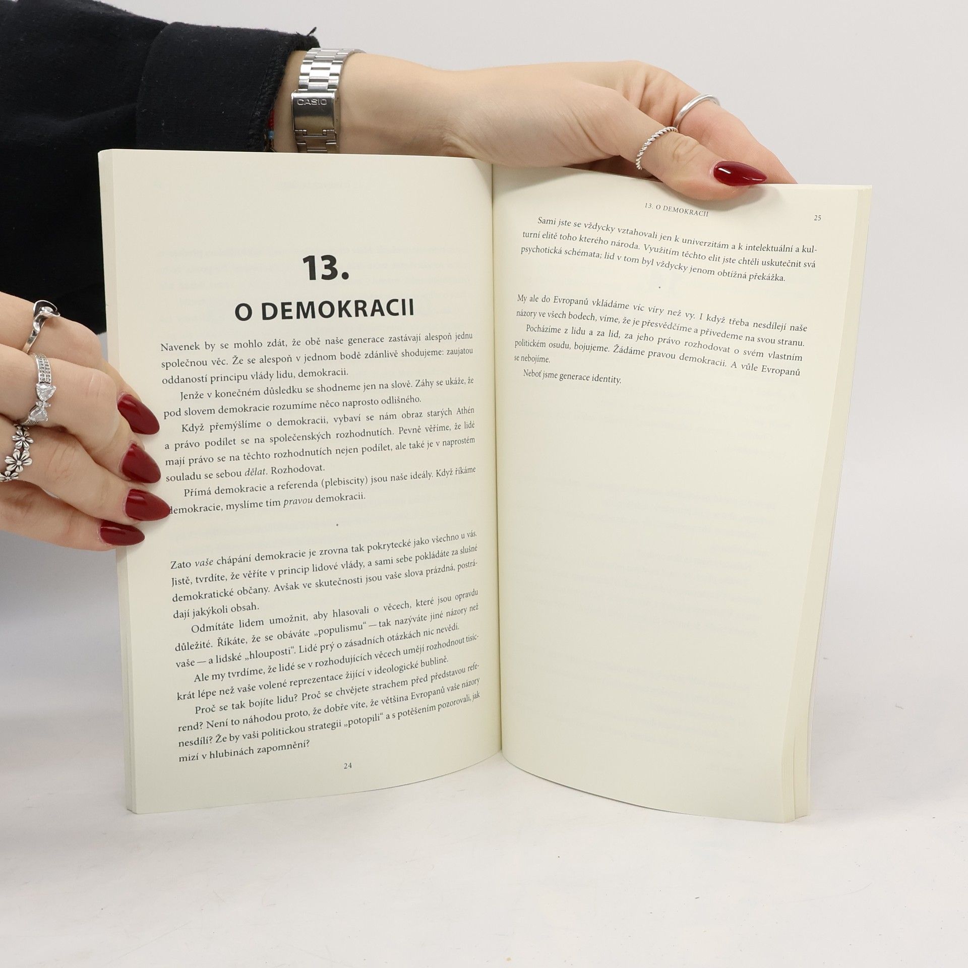 Upírání práv evropských národů na vlastní dědictví, historii a fyzickou existenci se stalo součástí ideologie postmoderního Západu. Masová imigrace, selektivní propaganda a konzumní kultura vedou Evropu k nebytí. Původní obyvatelé se stávají izolovanými a dezorientovanými jedinci, klamanými politickým systémem, který je ovládá. Na příčiny tohoto stavu existuje řada názorů, přičemž studentské bouře z května 1968 měly významný podíl na vzniku apolitické sebezničující situace, v níž se Evropa nyní nachází. Autor se nezaměřuje na popis cesty k dnešnímu marasmu, ale na to, co s tím lze udělat a kdo to provede. Po zradě politických a akademických elit a lhostejnosti generace Evropanů je úkol změnit směr svěřen mladým, hlavním obětem vykolejení západní společnosti. V knize aktivista Markus Willinger v krátkých kapitolách představuje svůj pohled na identitární hnutí. Podává jasný obraz chyb a naznačuje směry k možným řešením. Generace identity, přecházející od radikální politiky k existenciální filosofii, vysvětluje, co by mladí Evropané měli říci zkorumpovaným zástupcům zdecimovaných společenských struktur ovládajících náš kontinent.