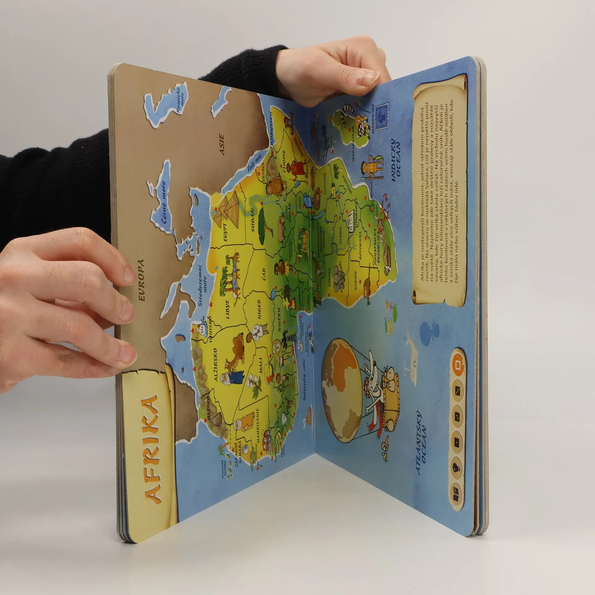Tato kniha obsahuje osm různých map. Na jednotlivých stranách se seznámíte se všemi kontinenty, poznáte země na naší planetě a zjistíte, kde tyto země leží. Nechybí zde ani oceány, moře, velké řeky a pohoří, které jsou nedílnou součástí naší planety. Obrázky na mapách vám ukáží, jaká zvířata, stavby či jiné zajímavosti můžete v jednotlivých zemích najít. Kniha je namluvena známým českým hercem Otakarem Brouskem ml. Kniha obsahuje přes 1800 zvuků a textů.