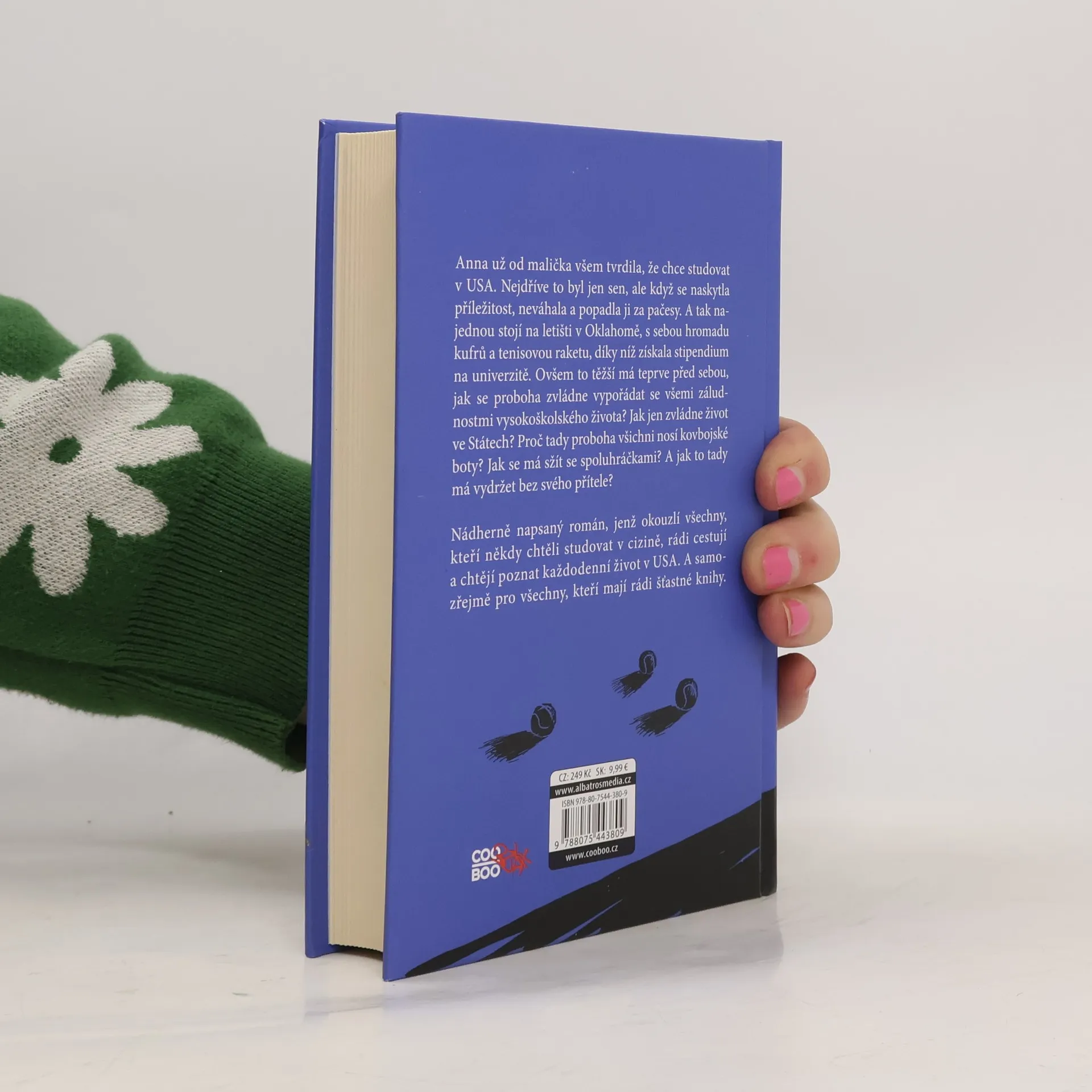 Anna už od malička všem tvrdila, že chce studovat v USA. Nejdříve to byl jen sen, ale když se naskytla příležitost, neváhala a popadla ji za pačesy. A tak najednou stojí na letišti v Oklahomě, s sebou hromadu kufrů a tenisovou raketu, díky níž získala stipendium na univerzitě. Ovšem to těžší má teprve před sebou, jak se proboha zvládne vypořádat se všemi záludnostmi vysokoškolského života? Jak jen zvládne život ve Státech? Proč tady proboha všichni nosí kovbojské boty? Jak se má sžít se svými spoluhráčkami? A jak to tady má vydržet bez svého přítele? Nádherně napsaný román, jenž okouzlí všechny, kteří někdy chtěli studovat v cizině, rádi cestují a chtějí poznat, jak probíhá každodenní život v USA. A samozřejmě pro všechny, kteří mají rádi šťastné konce.