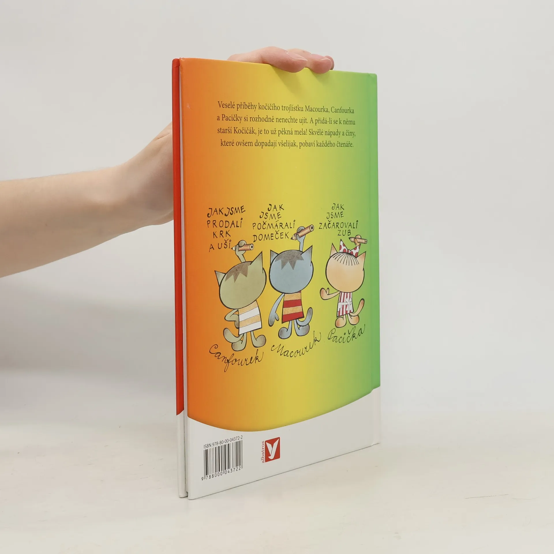 Dobrodružství kočičích kluků Macourka, Canfourka, kočičky Pacičky a jejich rošťáckého kamaráda Kočičáka už děti znají z televizních večerníčků. V knižní podobě vycházejí počtvrté a nad jejich lumpárnami se pobaví jistě i mnozí rodiče. Navíc v knížce najdete i oblíbenou písničku, která večerníček doprovází.