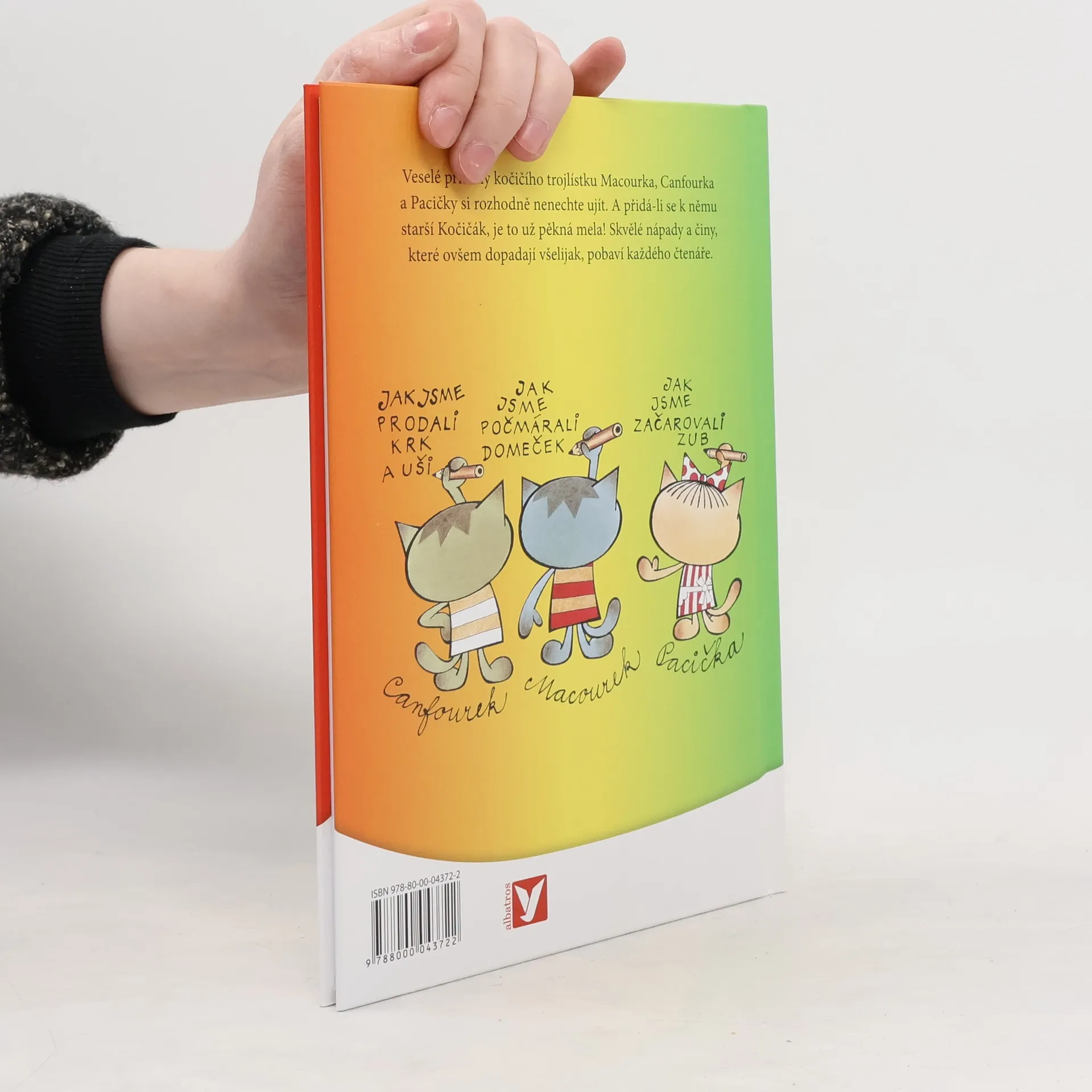 Dobrodružství kočičích kluků Macourka, Canfourka, kočičky Pacičky a jejich rošťáckého kamaráda Kočičáka už děti znají z televizních večerníčků. V knižní podobě vycházejí počtvrté a nad jejich lumpárnami se pobaví jistě i mnozí rodiče. Navíc v knížce najdete i oblíbenou písničku, která večerníček doprovází.