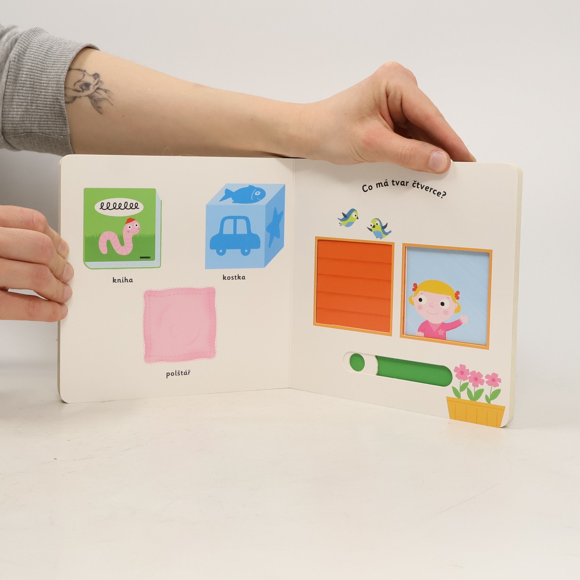 Čtverec, kruh, trojúhelník... Poznáváme tvary! Leporelo pro nejmenší děti s posuvnými prvky a pestrými ilustracemi. Víš, co to jsou tvary? Jaký tvar má třeba létající papírový drak? Nauč se poznávat tvary jednotlivých předmětů! Co je kulaté? Co má tvar čtverce? A co trojúhelníku? Všechny základní tvary objevíš v tomto leporelu s pestrými ilustracemi. Knížka je vhodná pro nejmenší děti, které si díky ní procvičí jemnou mototriku – obsahuje totiž velké množství nejrůznějších pohyblivých částí a okének, které obrázky oživují.