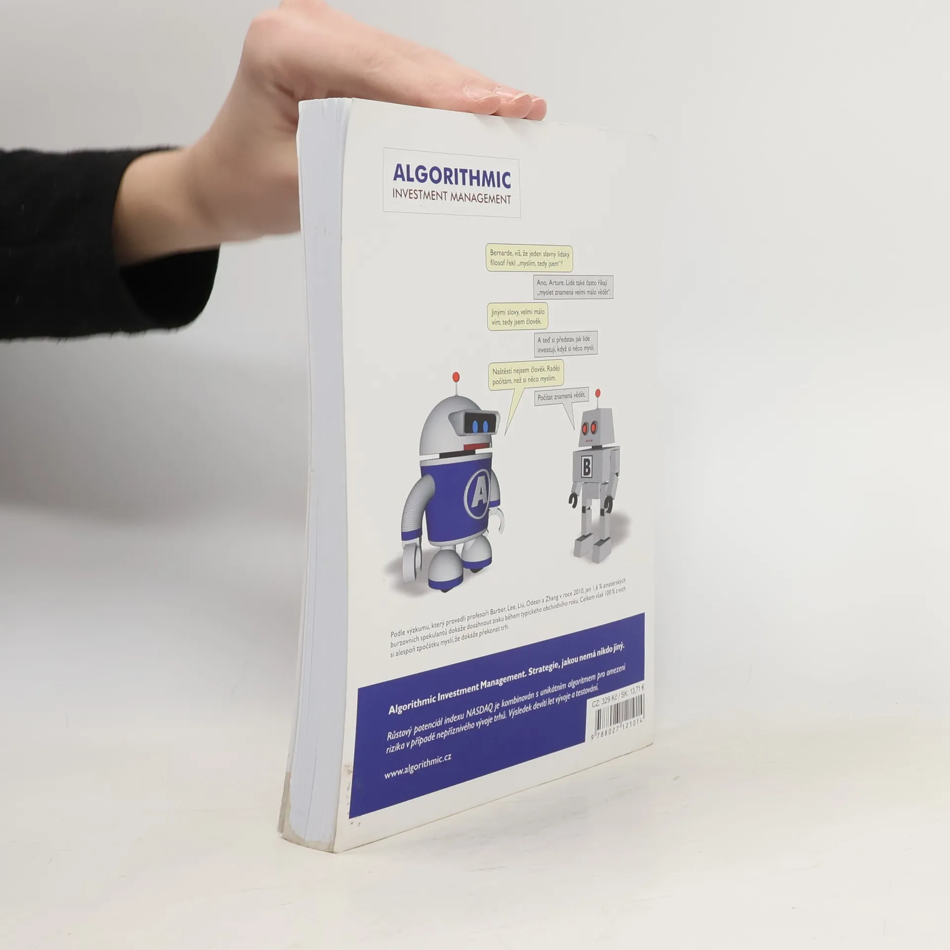Publikace stručně a přístupně shrnuje více než 25 let autorových zkušeností na kapitálových trzích. Srozumitelnosti pomáhá bohatá grafická příloha. Nevyžaduje žádné zvláštní znalosti matematiky, makroekonomie nebo účetnictví. Autor věnuje velkou pozornost obvyklým chybám začínajících i pokročilých investorů, rovněž i různým druhům rizik. Zabývá se ekonomickými a politickými faktory, které ovlivňují výnosnost trhů akcií a pevně úročených cenných papírů. Podstatnou část obsahu tvoří kapitoly věnované algoritmickému investování. V této části knihy je popsáno, jaké přístupy fungují, jaké nefungují a proč. Dozvíte se o limitech umělé inteligence a o výhodách disciplinovaného investičního přístupu. Část kapitoly je věnována i práci se softwarovým produktem Robot Investment Calculator.