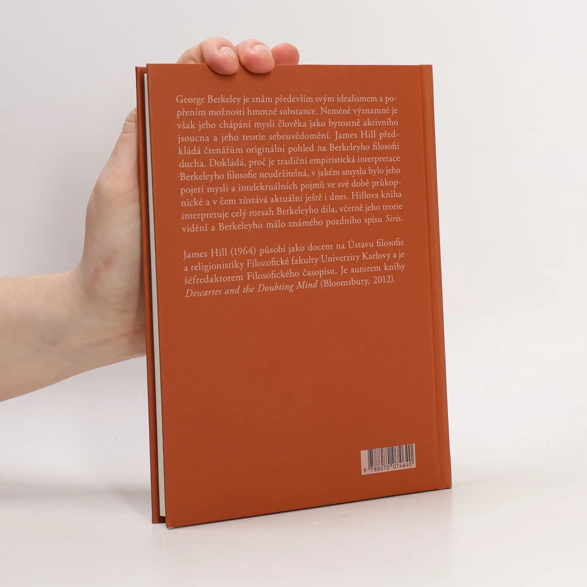 George Berkeley je znám především svým idealismem a popřením možnosti hmotné substance. Neméně významné je však jeho chápání mysli člověka jako bytostně aktivního jsoucna a jeho teorie sebeuvědomění. James Hill předkládá čtenářům originální pohled na Berkeleyho filosofii ducha. Dokládá, proč je tradiční empiristická interpretace Berkeleyho filosofie neudržitelná, v jakém smyslu bylo jeho pojetí mysli a intelektuálních pojmů ve své době průkopnické a v čem zůstává aktuální ještě i dnes. Hillova kniha interpretuje celý rozsah Berkeleyho díla, včetně jeho teorie vidění a Berkeleyho málo známého pozdního spisu Siris.