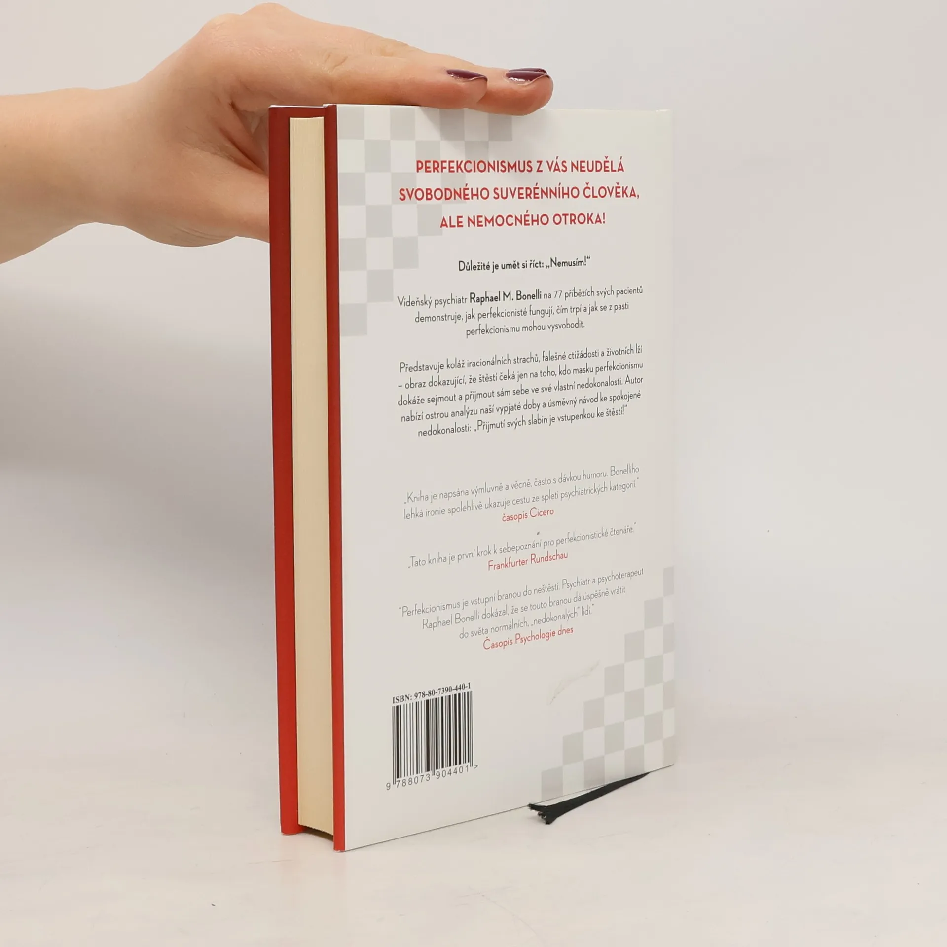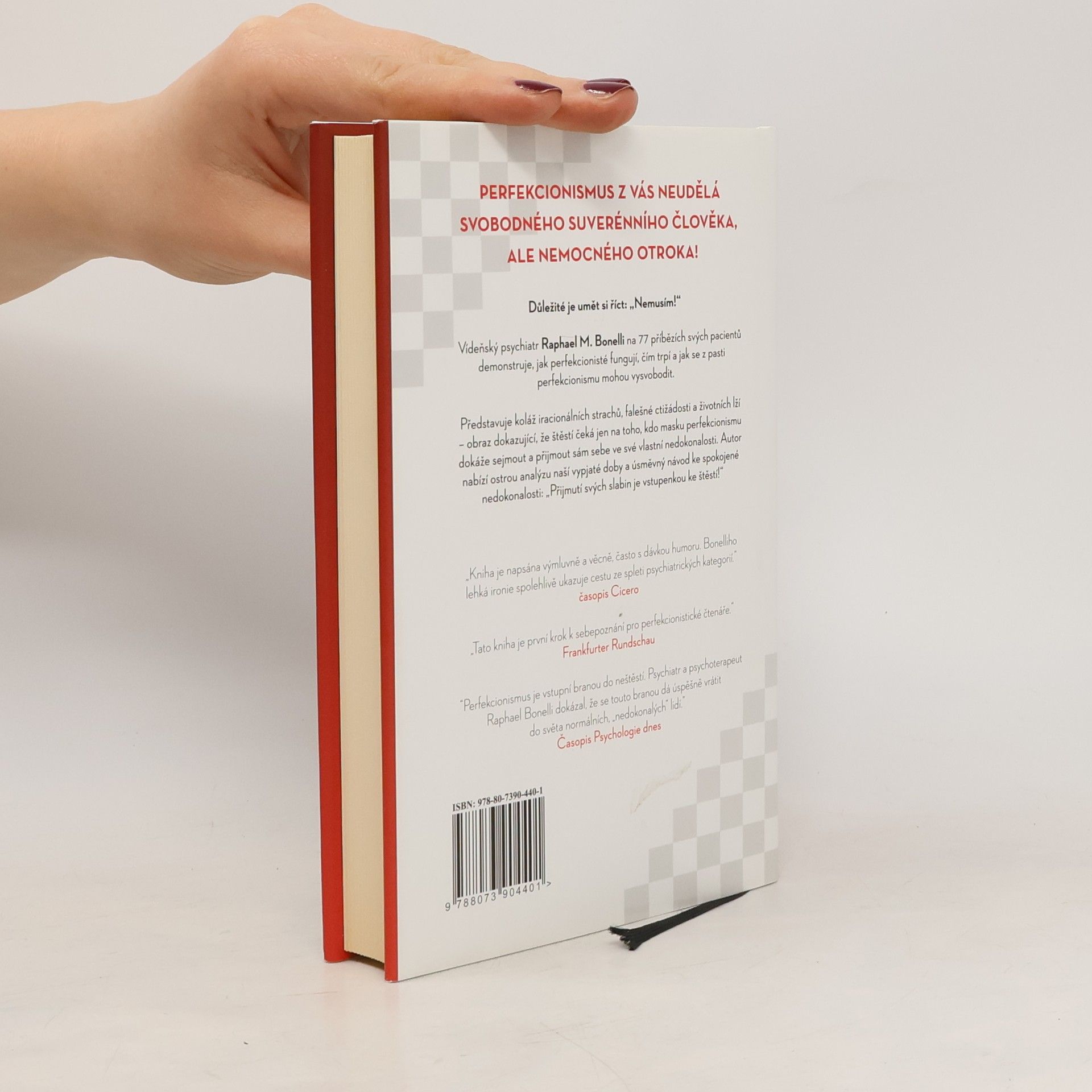 Typická anamnéza a módní nemoc dnešní doby: perfekcionismus. Vídeňský psychiatr a psychoterapeut Raphael Bonelli posbíral 70 poučných i zábavných anamnéz z vlastní praxe: od nevěsty, která se na svatbě odvážila říct „ne“ až po podvodníčka, který svou impotenci „léčil“ rozesíláním stovek milostných dopisů úplně cizím ženám. Adonisův komplex, „sloní nohy", „vosí pasy" a „super ňadra" – imaginární choroby mnoha pacientů, kteří se chytili do pasti kosmetického průmyslu, hubnutí a šílenství zdravého života. Jeho diagnóza je: "Ať už ve školství, manželství nebo zaměstnání - chceme dělat vždy všechno perfektně. A ještě přitom i dobře vypadat. Ale téměř nikdy se nám to nepodaří, nesplníme vlastní požadavky. Bonelli výstižně vykresluje rysy dnešní náročné doby, strachu, falešné ctižádosti a bludů. Ukazuje, že nejdokonalejší možností je smířit se se svou vlastní nedokonalostí. Perfekcionismus z vás neudělá svobodného suverénního člověka, ale nemocného otroka!
