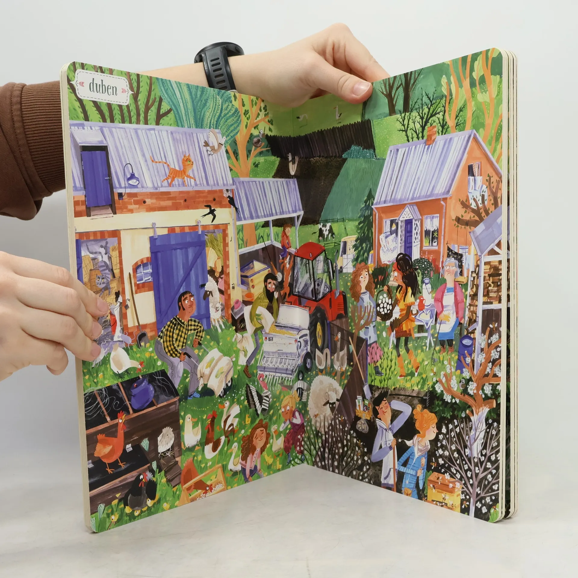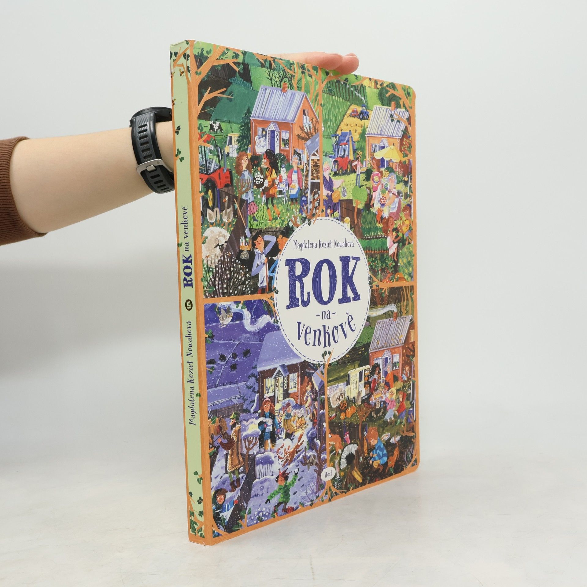 Život na statku Lístkových se řídí podle ročních období. V zimě pořádá pan Josef pro hosty z města vyjížďky na saních. Na jaře je potřeba připravit půdu a zasít. Léto je čas žní a senoseče. Podzimní sklizeň pak zpříjemňují táboráky a pečení brambor v popelu. Dvanáct bohatě ilustrovaných dvoustran zachycuje, co se v hospodářství děje v průběhu celého roku. Dozvíme se, jaké povinnosti mají děti a jaké dospělí, co obnáší práce na poli a u zvířat. Rok na venkově podněcuje zvídavost, rozvíjí postřeh, podporuje představivost i logické myšlení. Ale hlavně je skvělou zábavou pro celou rodinu. Pro děti od dvou let.