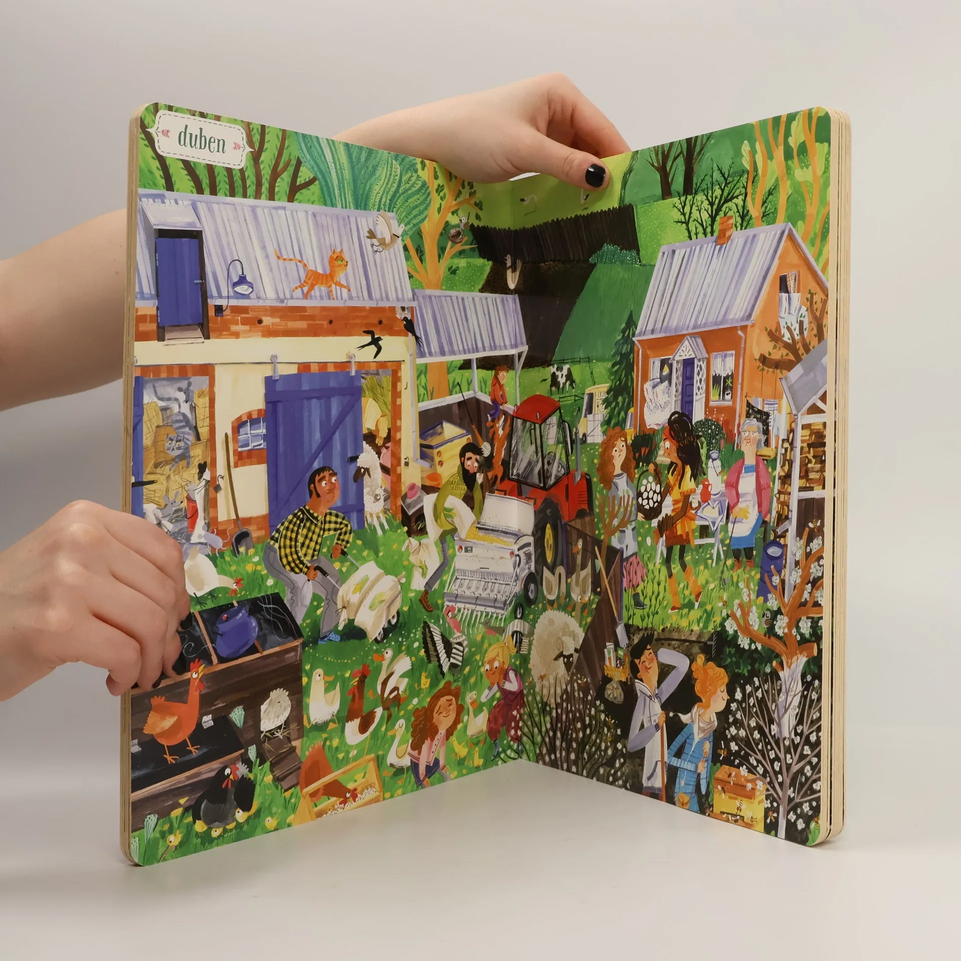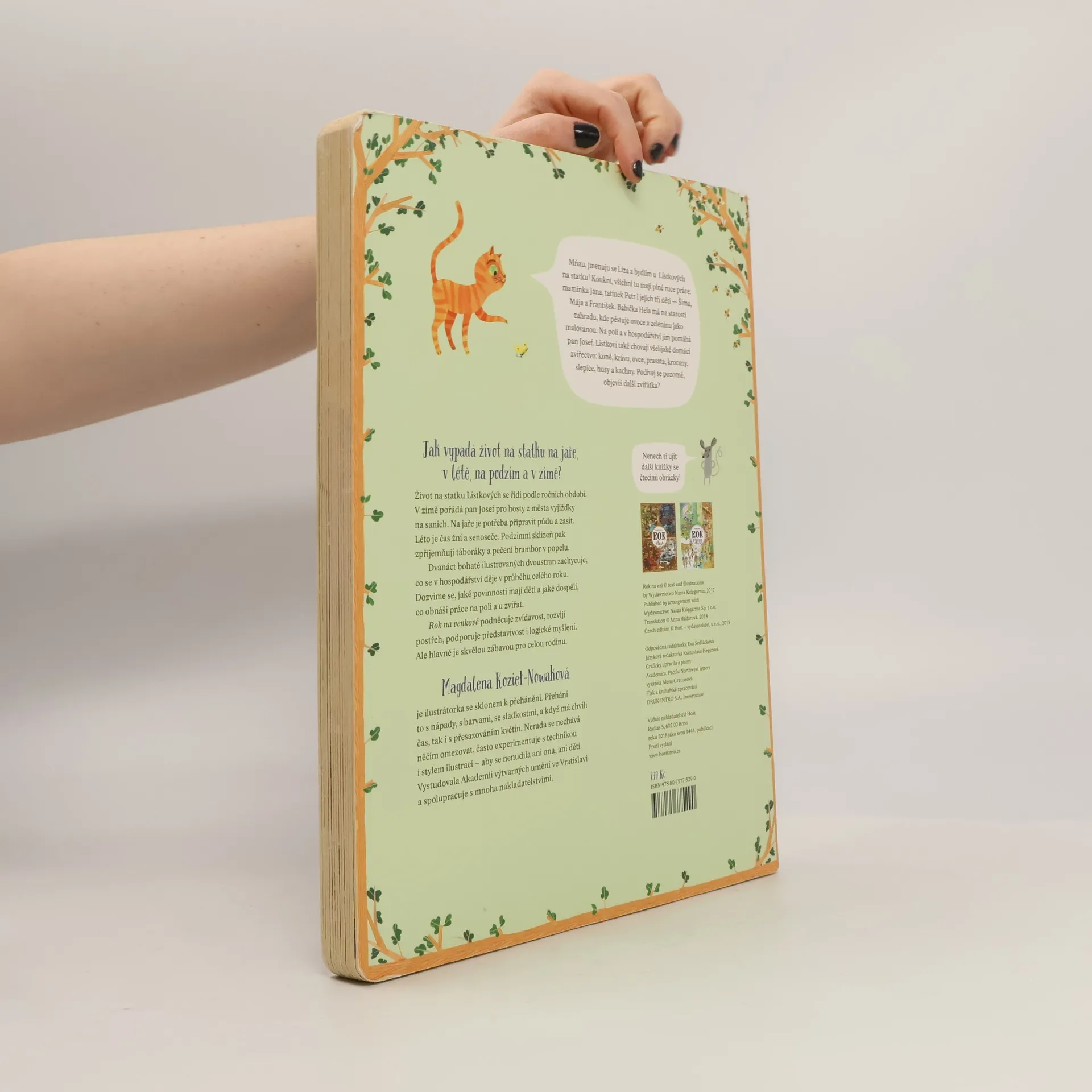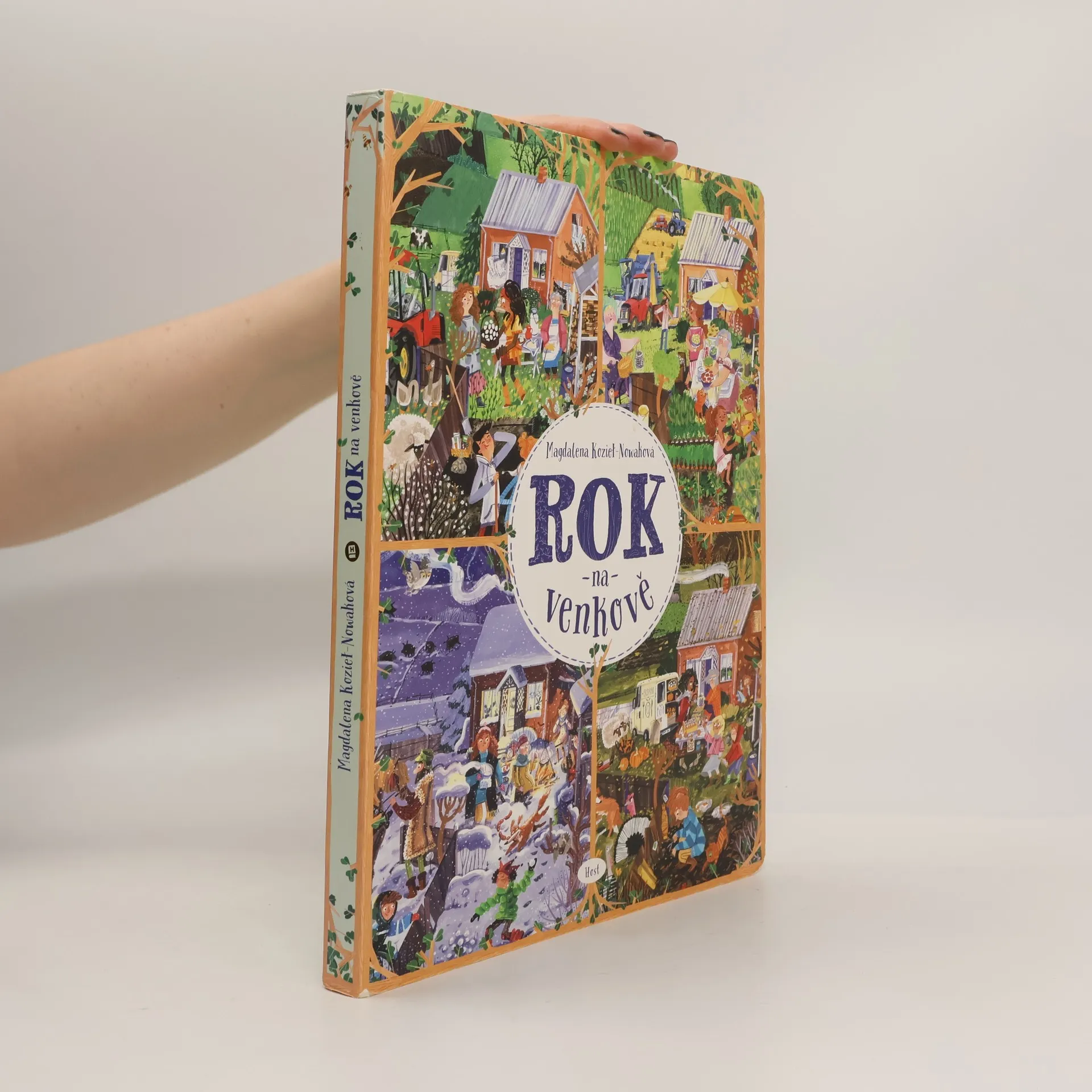 Život na statku Lístkových se řídí podle ročních období. V zimě pořádá pan Josef pro hosty z města vyjížďky na saních. Na jaře je potřeba připravit půdu a zasít. Léto je čas žní a senoseče. Podzimní sklizeň pak zpříjemňují táboráky a pečení brambor v popelu. Dvanáct bohatě ilustrovaných dvoustran zachycuje, co se v hospodářství děje v průběhu celého roku. Dozvíme se, jaké povinnosti mají děti a jaké dospělí, co obnáší práce na poli a u zvířat. Rok na venkově podněcuje zvídavost, rozvíjí postřeh, podporuje představivost i logické myšlení. Ale hlavně je skvělou zábavou pro celou rodinu. Pro děti od dvou let.