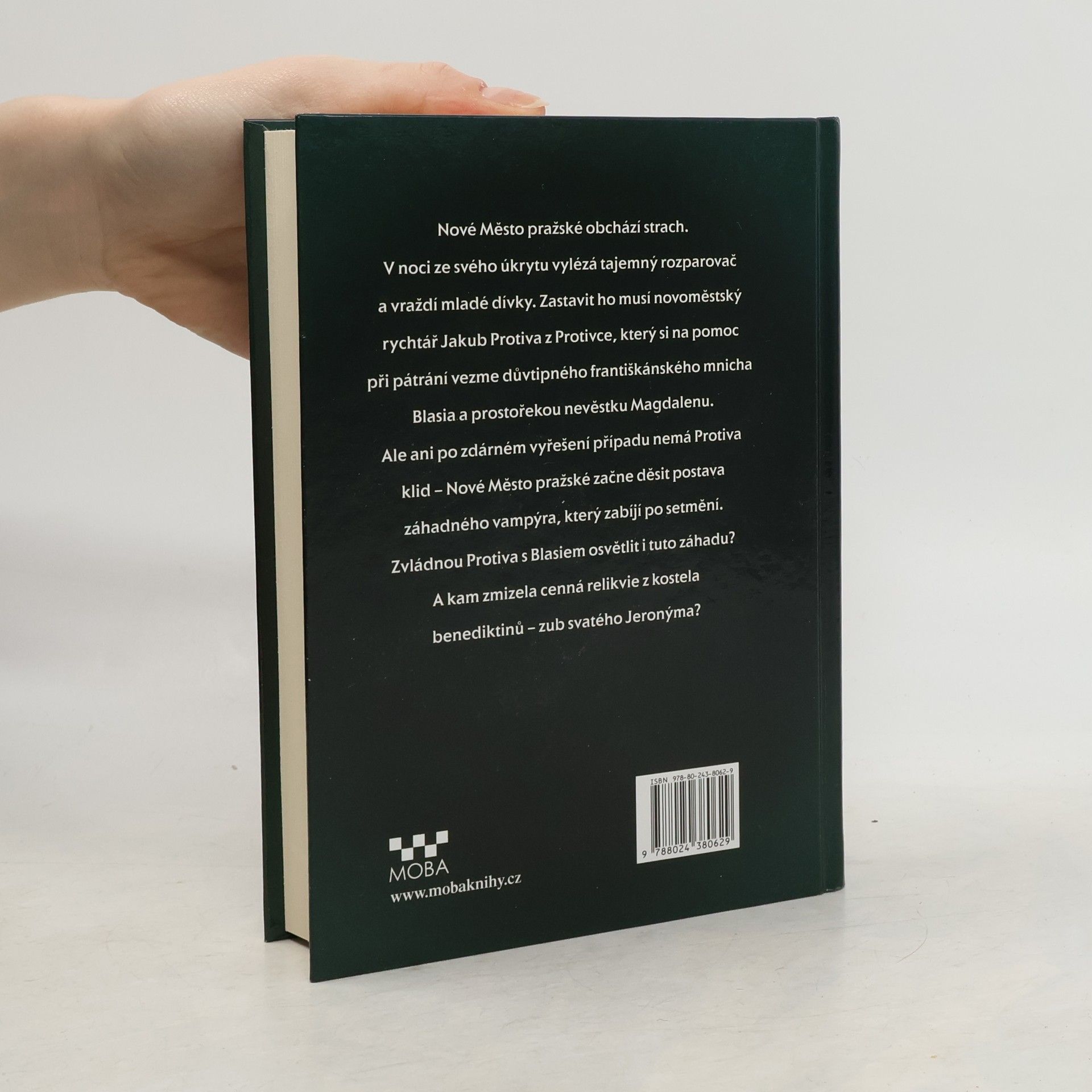 Dva detektivní příběhy známého českého autora. V prvním se setkáváme s novoměstským rychtářem Jakubem Protivou z Protivce, který pátrá po tajemném vrahovi mladých žen. Jeho nečekanými pomocníky se stávají důvtipný františkánský mnich Blasius a prostořeká nevěstka Magdalena. Ve druhém příběhu Jakub Protiva z Protivce a mnich Blasius čelí řádění tajemného vampýra, kterého se bojí celé Nové Město pražské. Údajně jim má být zázračně oživlý irský alchymista, který má na svědomí vraždy a možná i zmizení cenné relikvie – zubu svatého Jeronýma.
