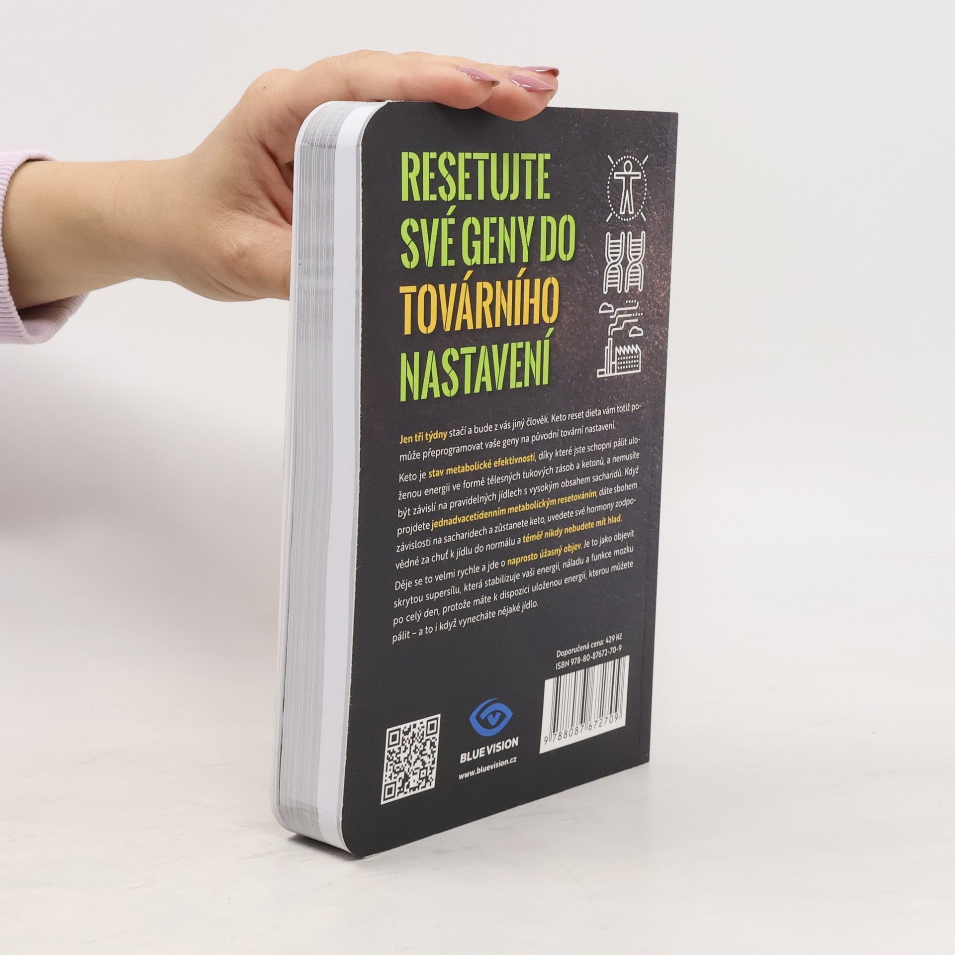 Jen tři týdny stačí a bude z vás jiný člověk. Keto reset dieta vám totiž pomůže přeprogramovat vaše geny na původní tovární nastavení. Keto je stav metabolické efektivnosti, díky které jste schopni pálit uloženou energii ve formě tělesných tukových zásob a ketonů, a nemusíte být závislí na pravidelných jídlech s vysokým obsahem sacharidů. Když projdete jednadvacetidenním metabolickým resetováním, dáte sbohem závislosti na sacharidech a zůstanete keto, uvedete své hormony zodpovědné za chuť k jídlu do normálu a téměř nikdy nebudete mít hlad. Děje se to velmi rychle a jde o naprosto úžasný objev. Je to jako objevit skrytou supersílu, která stabilizuje vaši energii, náladu a funkce mozku po celý den, protože máte k dispozici uloženou energii, kterou můžete pálit – a to i když vynecháte nějaké jídlo.
