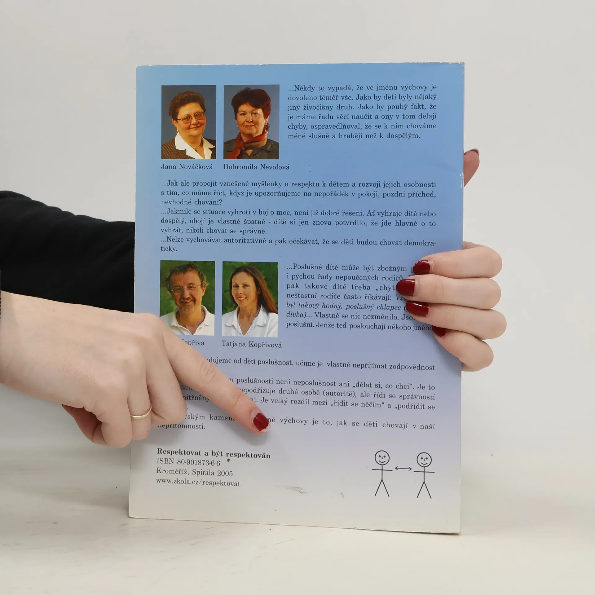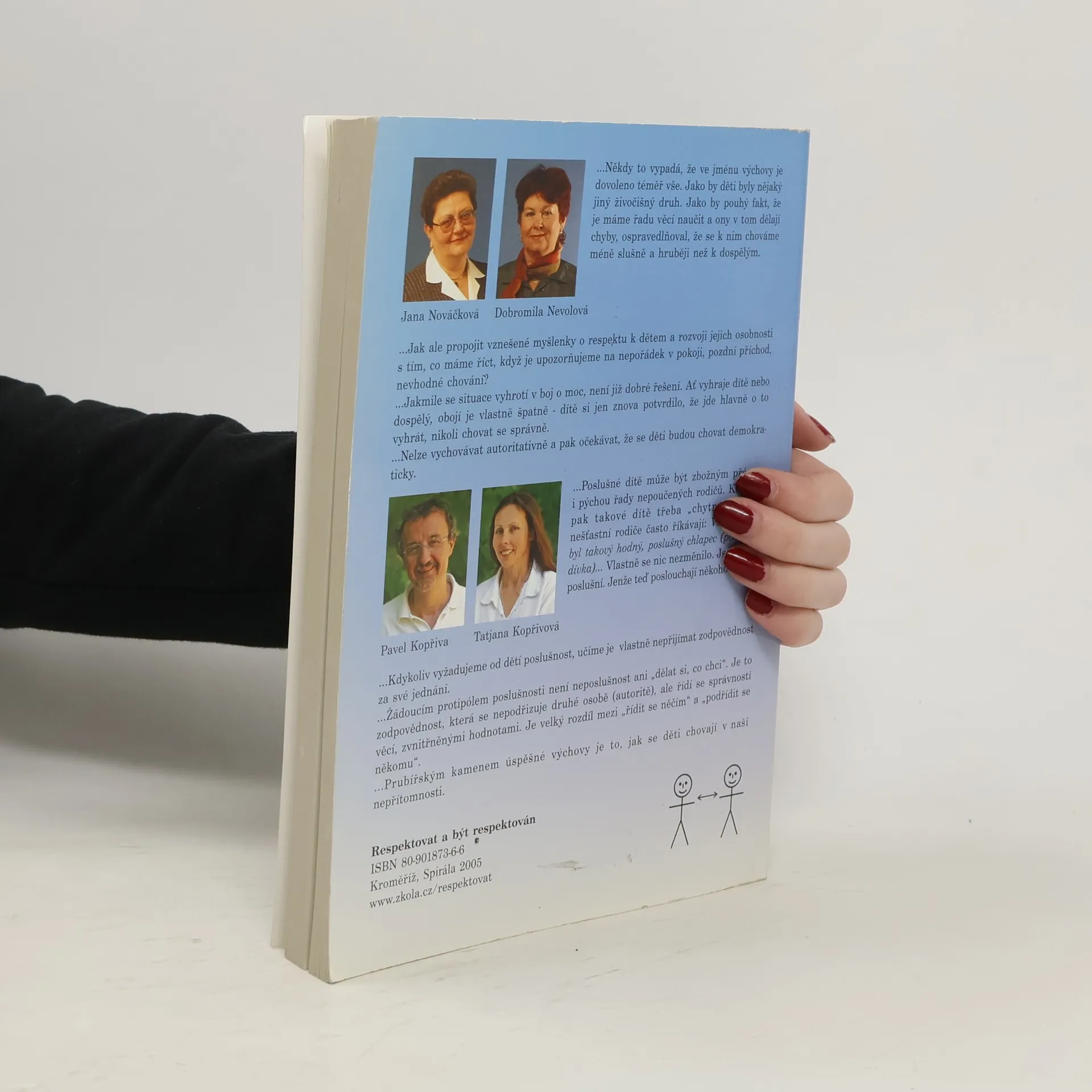 Výchova dětí založená na uplatňování moci a síly je vyčerpávající a přitom málo účinná. Má negativní dopady nejen na plnění každodenních oprávněných požadavků, ale také na sebeúctu, rozvoj osobnosti a vzájemné vztahy všech zúčastněných stran. Totéž platí i pro komunikaci dospělých mezi sebou, kdykoliv v ní převládne vzájemný boj o moc. Kniha Respektovat a být respektován je určena všem, kteří se snaží o partnerský, respektující přístup ve výchově, vzdělávání a v mezilidských vztazích. Nabízí jednak postupy a dovednosti okamžitě využitelné v praxi, jednak pohled na širší souvislosti mocenského a respektujícího pojetí výchovy, vzdělávání a komunikace. Je využitelná nejen pro rodiče a učitele, ale pro všechny, kteří chtějí investovat úsilí do rozšíření repertoáru svých komunikačních dovedností pro zvládání běžných i náročných životních situací. Přirozeným důsledkem osvojení těchto postupů a dovedností je udržení vlivu i dobrých vztahů a vzrůstající pocit vnitřního klidu, sebeúcty a kompetentnosti. Autoři jsou známí jako lektoři stejnojmenného kurzu, který je již řadu let organizován po celé ČR.