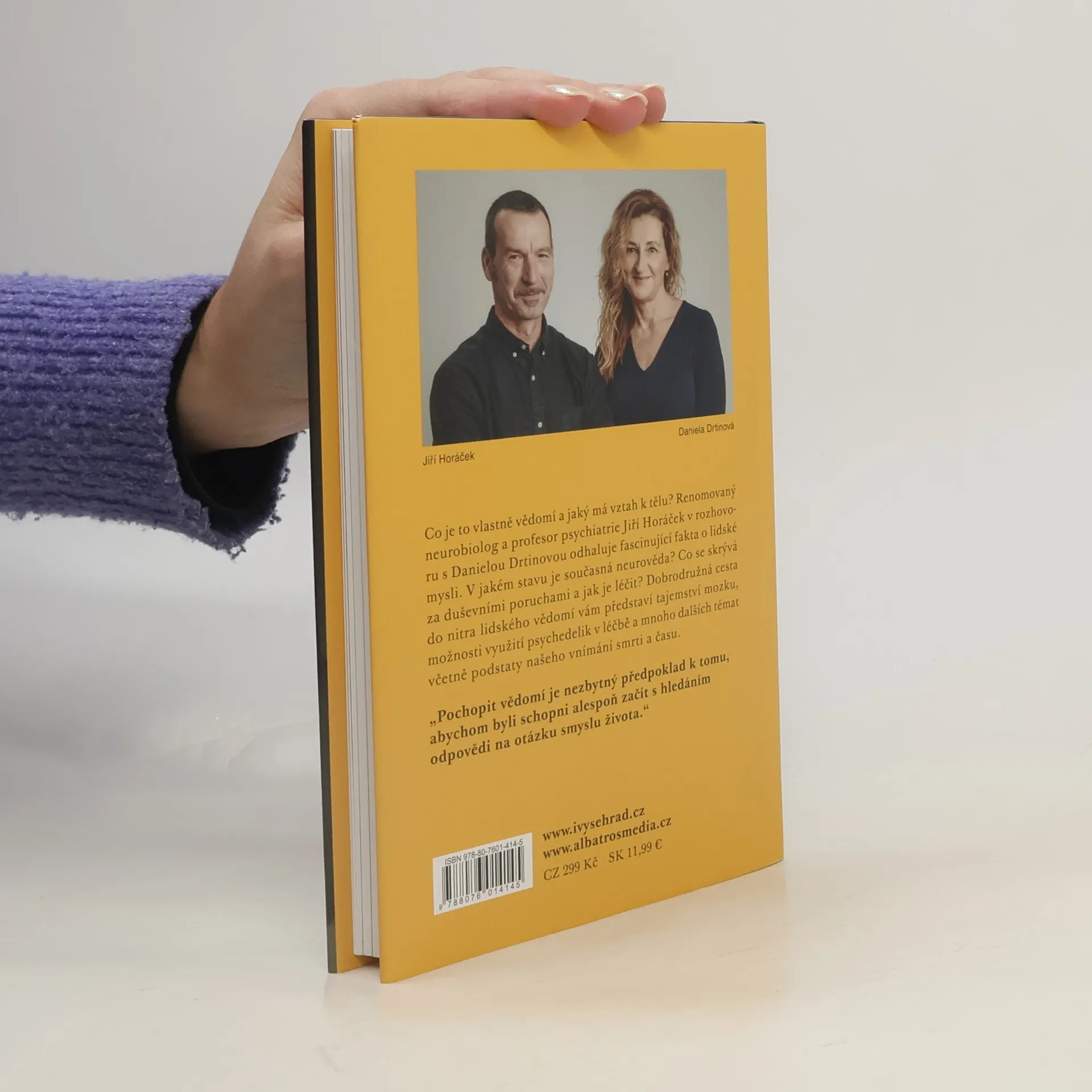 Jaký je vztah našeho vědomí k našemu tělu? Jakým způsobem se navzájem ovlivňují? A jakými metodami lze toto vše zkoumat? Tyto a podobné otázky stojí v jádru rozhovoru redaktorky Daniely Drtinové s psychiatrem, neurobiologem a psychoterapeutem Jiřím Horáčkem. Kniha se krom jiného dotýká čtenářsky vděčných témat, jako je problematika psychosomatických či duševních onemocnění a jejich možné formy léčby, jejichž zkoumání se prof. Horáček v současnosti intenzivně věnuje. V této oblasti nově (či spíše znovu) přicházejí ke slovu též experimenty s psychedelickými látkami, které mohou mít výrazně léčebný potenciál. Toto dobrodružné objevování neznámých cest vede k formulování nových vědeckých hypotéz či teorií.