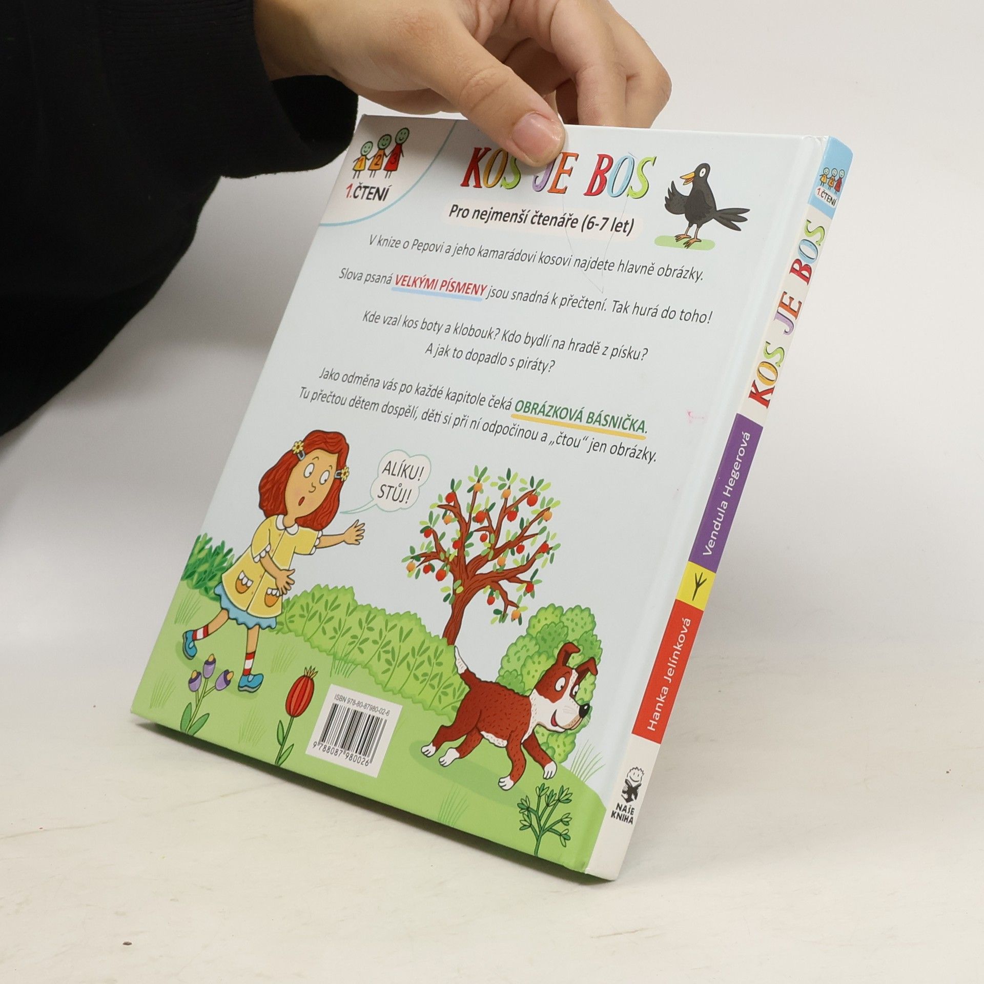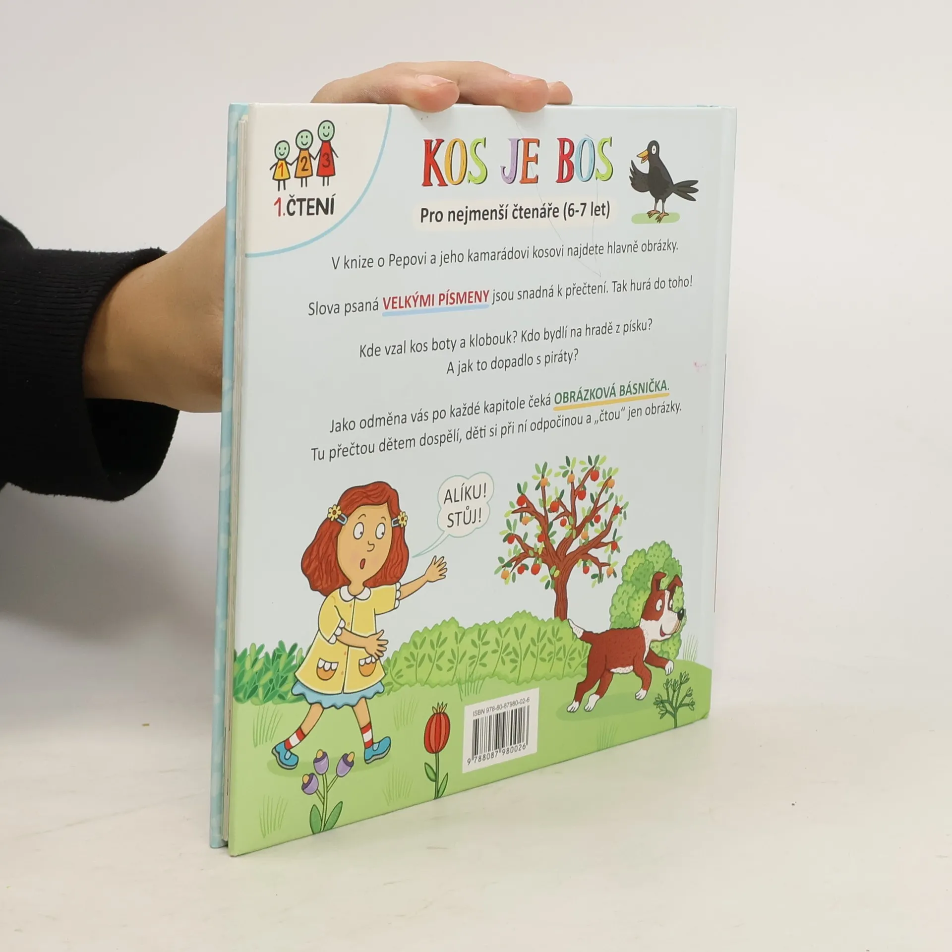 1. čtení - pro nejmenší čtenáře (6-7 let). V knize o Pepovi a jeho kamarádovi kosovi najdete hlavně obrázky. Slova psaná velkými písmeny jsou snadná k přečtení. Tak hurá do toho! Kde vzal kos boty a klobouk? Kdo bydlí na hradě z písku? A jak to dopadlo s piráty? Jako odměna vás po každé kapitole čeká obrázková básnička. Tu přečtou dětem dospělí, děti si při ní odpočinou a "čtou" jen obrázky.