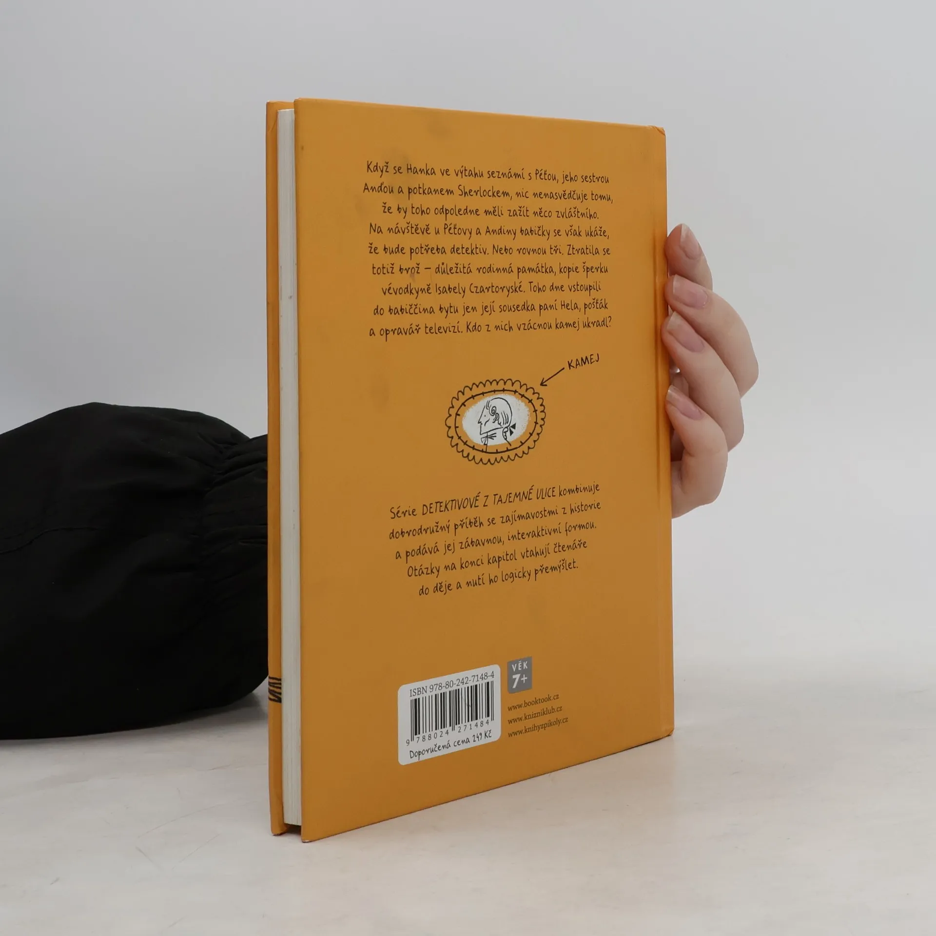 Když se Hanka ve výtahu seznámí s Péťou, jeho sestrou Anďou a potkanem Sherlockem, nic nenasvědčuje tomu, že by toho odpoledne měli zažít něco zvláštního. Na návštěvě u Péťovy a Andiny babičky se však ukáže, že bude zapotřebí detektiva. Nebo rovnou tří. Ztratila se totiž brož – důležitá rodinná památka, kopie šperku vévodkyně Isabely Czartoryské. Toho dne vstoupili do babiččina bytu jen její sousedka paní Hela, pošťák a opravář televizí. Kdo z nich vzácnou kamej ukradl? Série Detektivové z Tajemné ulice kombinuje dobrodružný příběh se zajímavostmi z historie a podává jej zábavnou, interaktivní formou. Čtenář je pomocí hádanek vztažen do děje a nucen logicky přemýšlet. Kniha je určena dětem od 7 let.