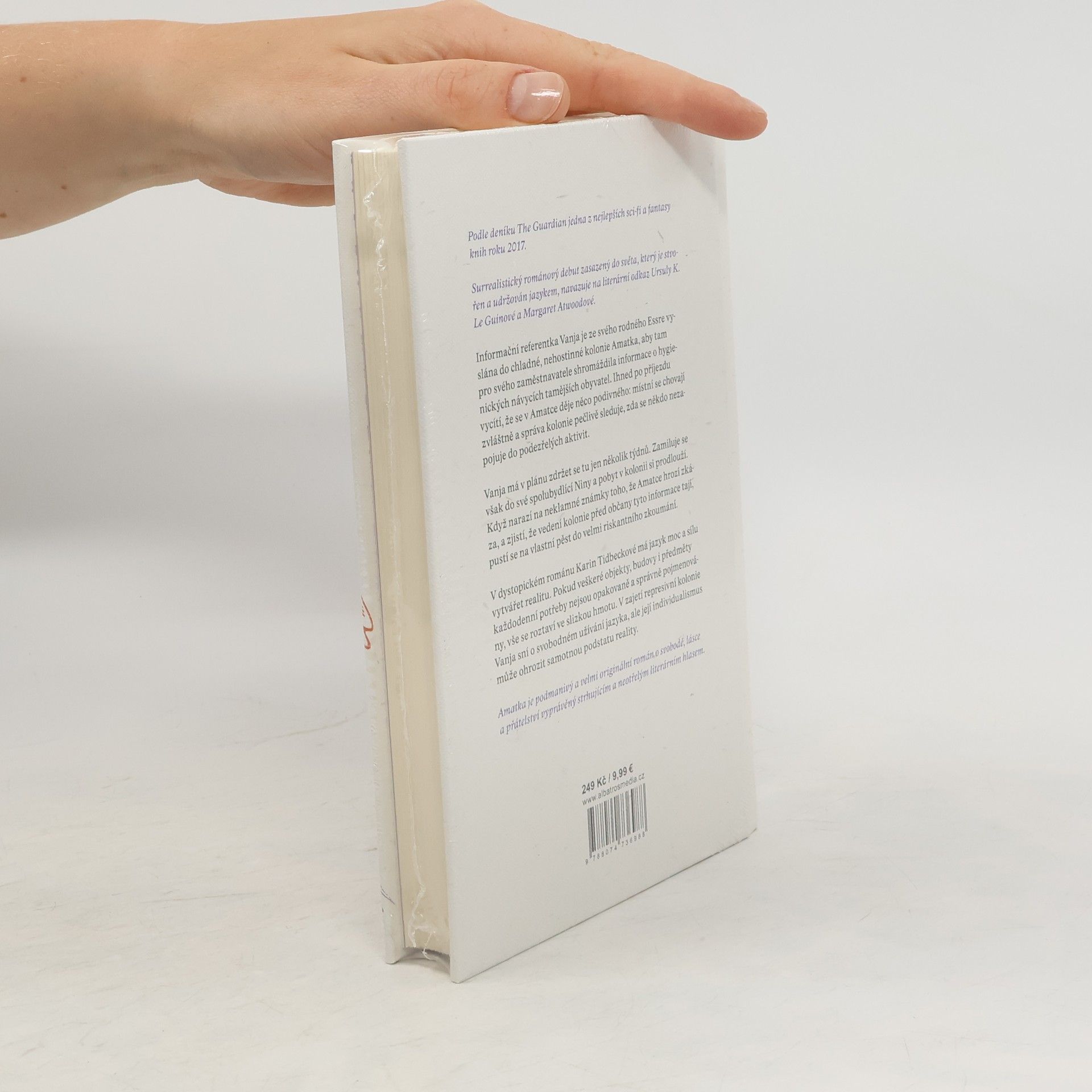 Podle deníku The Guardian jedna z nejlepších sci‑fi a fantasy knih roku 2017. Surrealistický románový debut zasazený do světa, který je stvořen a udržován jazykem, navazuje na literární odkaz Ursuly K. Le Guinové a Margaret Atwoodové. Informační referentka Vanja je ze svého rodného Essre vyslána do chladné, nehostinné kolonie Amatka, aby tam pro svého zaměstnavatele shromáždila informace o hygienických návycích tamějších obyvatel. Ihned po příjezdu vycítí, že se v Amatce děje něco podivného: místní se chovají zvláštně a správa kolonie pečlivě sleduje, zda se někdo nezapojuje do podezřelých aktivit. Vanja má v plánu zdržet se tu jen několik týdnů. Zamiluje se však do své spolubydlící Niny a pobyt v kolonii si prodlouží. Když narazí na neklamné známky toho, že Amatce hrozí zkáza, a zjistí, že vedení kolonie před občany tyto informace tají, pustí se na vlastní pěst do velmi riskantního zkoumání. V dystopickém románu Karin Tidbeckové má jazyk moc a sílu vytvářet realitu. Pokud veškeré objekty, budovy i předměty každodenní potřeby nejsou opakovaně a správně pojmenovány, vše se roztaví ve slizkou hmotu. V zajetí represivní kolonie Vanja sní o svobodném užívání jazyka, ale její individualismus může ohrozit samotnou podstatu reality.