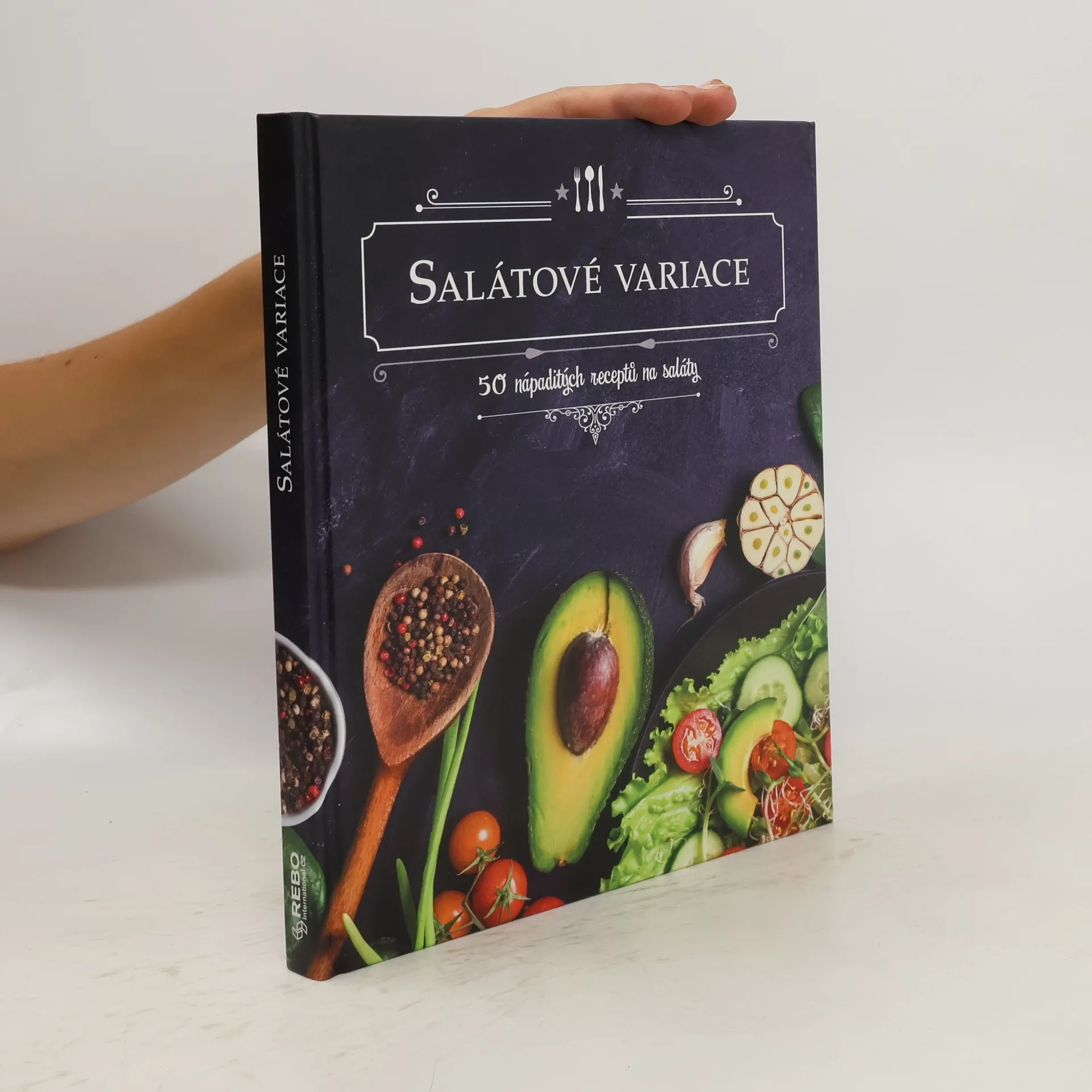 50 nápaditých receptů na saláty. Dobře vypadající a chutnající salát dokáže potěšit tělo i duši. Proto jsme se rozhodli nabídnout vám 50 nápaditých receptů, které jsou zároveň snadné na přípravu. Každá stránka přináší nové barevné salátové dobroty, plné výtečných i výživných ingrediencí. Některé recepty jsou jednoduché a rychlé, jiné naopak netypické a rafinované. Připravte si salát z čerstvých i tepelně upravených ingrediencí, z masa, ryb, nejrůznějších sýrů nebo třeba těstovin. Co takhle broskve se sýrem taleggio, fazolový salát po maďarsku, peruánský ceviche nebo asijský raw salát Pad Thai? Nebo raději klasiku jako nicejský salát nebo César? Vybere si určitě každý! Přejeme dobrou chuť.