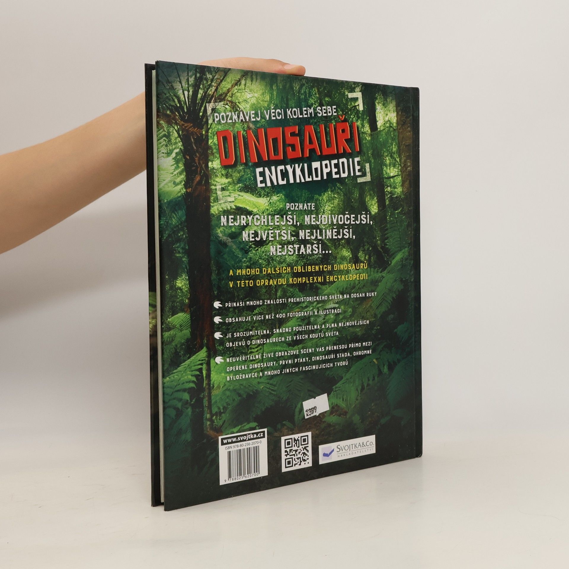 Tato velká encyklopedie dinosaurů přináší obrovské množství poznatků o životě v pravěku a o dinosaurech, kteří vám ožijí před očima. Je srozumitelná, přehledná a plná nejnovějších objevů o dinosaurech ze všech koutů světa. Najdete v ní neuvěřitelně živé obrazové scény, které vás přenesou rovnou mezi dinosaury – uvidíte hrozivé masožravce, dinosauří stáda, ohromné býložravce a mnoho jiných fascinujících tvorů včetně prapředků dnešních ptáků. Obsahuje více než 400 fotografií a ilustrací.