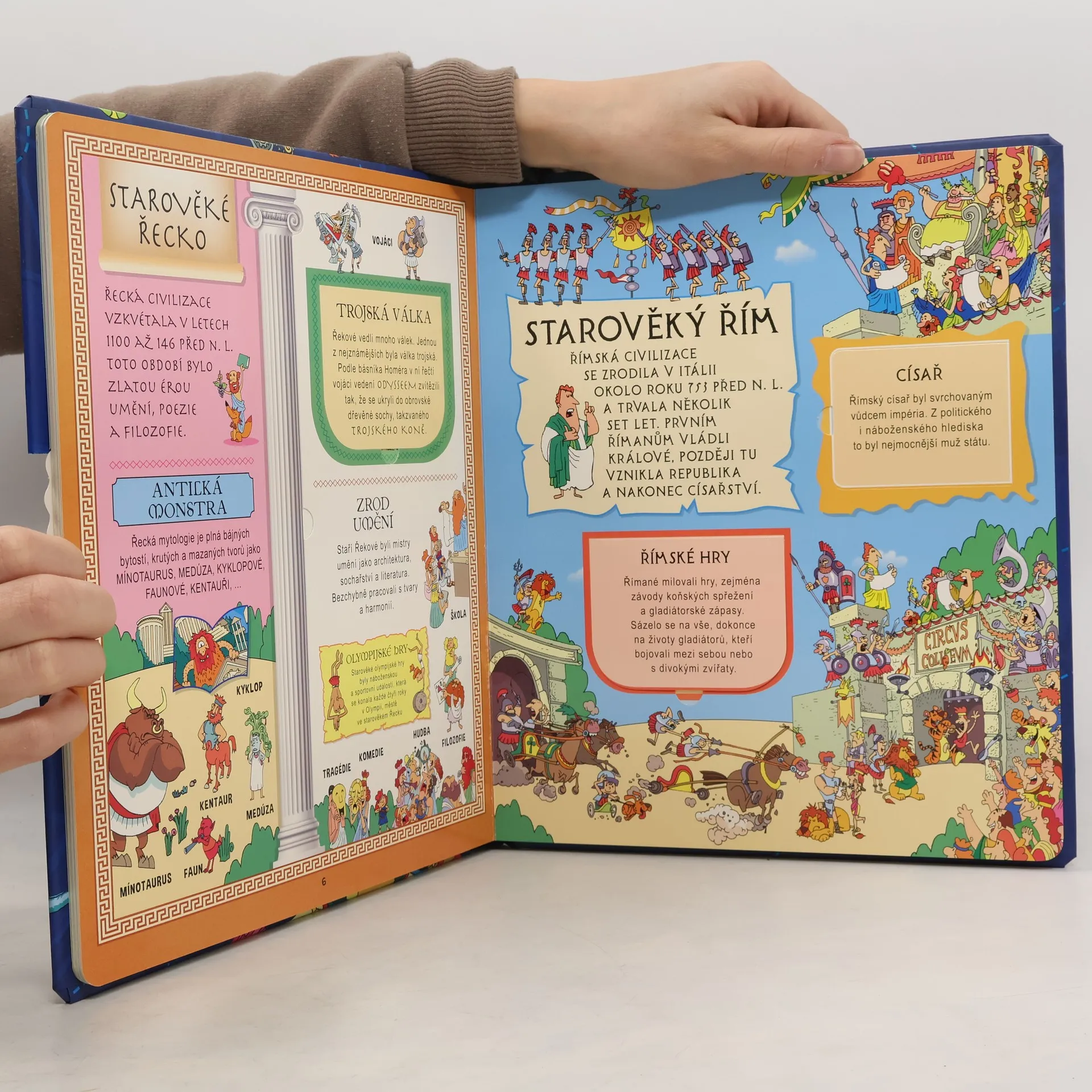 Moje první dějiny světa jsou veselou, bohatě ilustrovanou vzdělávací knihou pro všechny zvídavé děti, které chtějí poznat historii lidstva. Vydejte se s námi na cestu po proudu dějin skrze jeskyně pravěkých lidí, písky starého Egypta, římskou arénu s gladiátory nebo středověkou tržnici až do časů párou prodchnuté průmyslové revoluce, odkud už je to jen krůček k letu na Měsíc. Na cestě se dovíte spoustu zajímavostí a nebude chybět ani zábavný interaktivní kvíz na závěr.