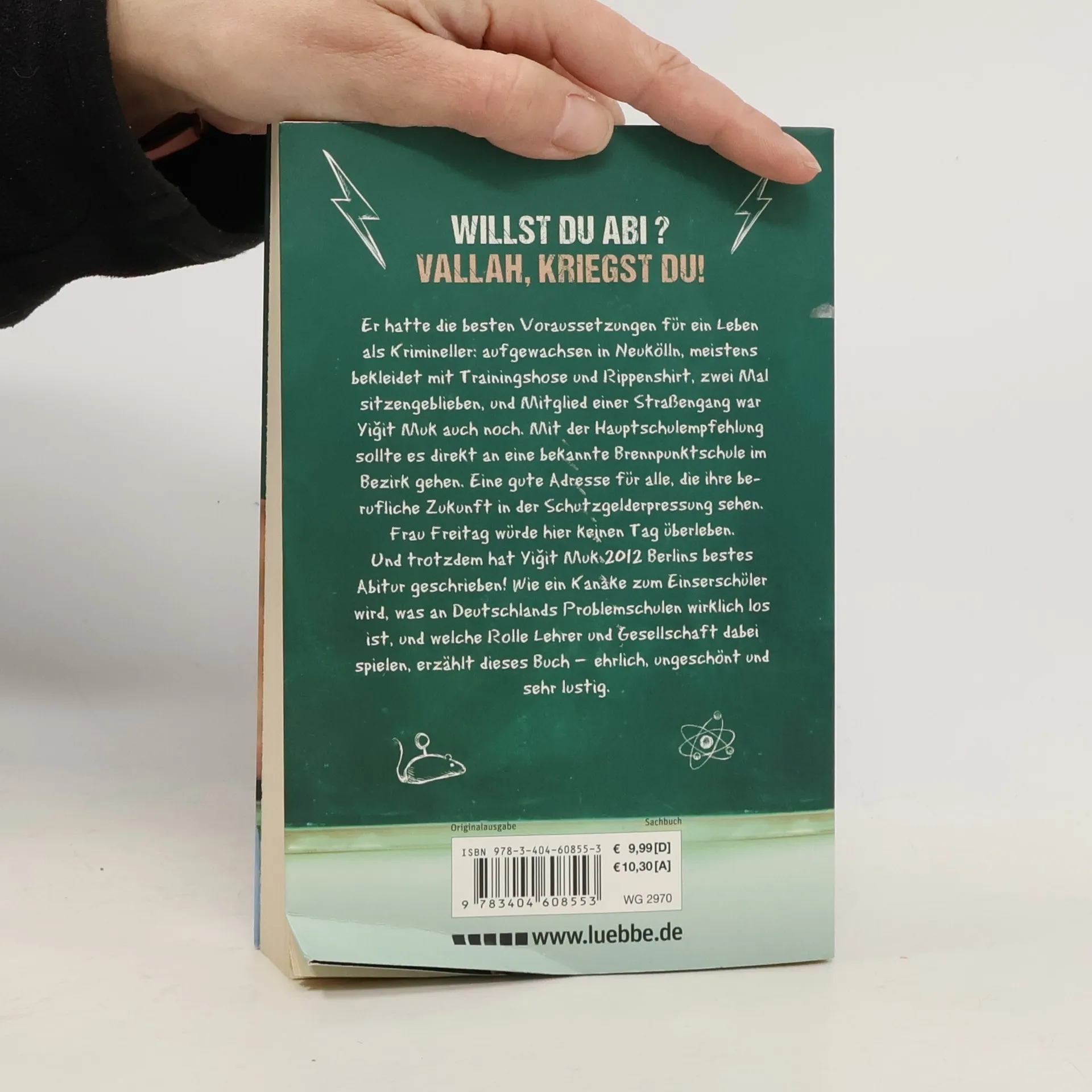Er hatte die besten Voraussetzungen für ein Leben als Krimineller: aufgewachsen in Neukölln, meistens bekleidet mit Trainingshose und Rippenshirt, zwei Mal sitzengeblieben, und Mitglied einer Straßengang war Yigit Muk auch noch. Mit der Hauptschulempfehlung sollte es direkt an eine bekannte Brennpunktschule im Bezirk gehen. Eine gute Adresse für alle, die ihre berufliche Zukunft in der Schutzgelderpressung sehen. Und trotzdem hat Yigit Muk 2012 Berlins bestes Abitur geschrieben! Wie ein Kanake zum Einserschüler wird, was an Deutschlands Problemschulen wirklich los ist, und welche Rolle Lehrer und Gesellschaft dabei spielen, erzählt dieses Buch - ehrlich, ungeschönt und sehr lustig.