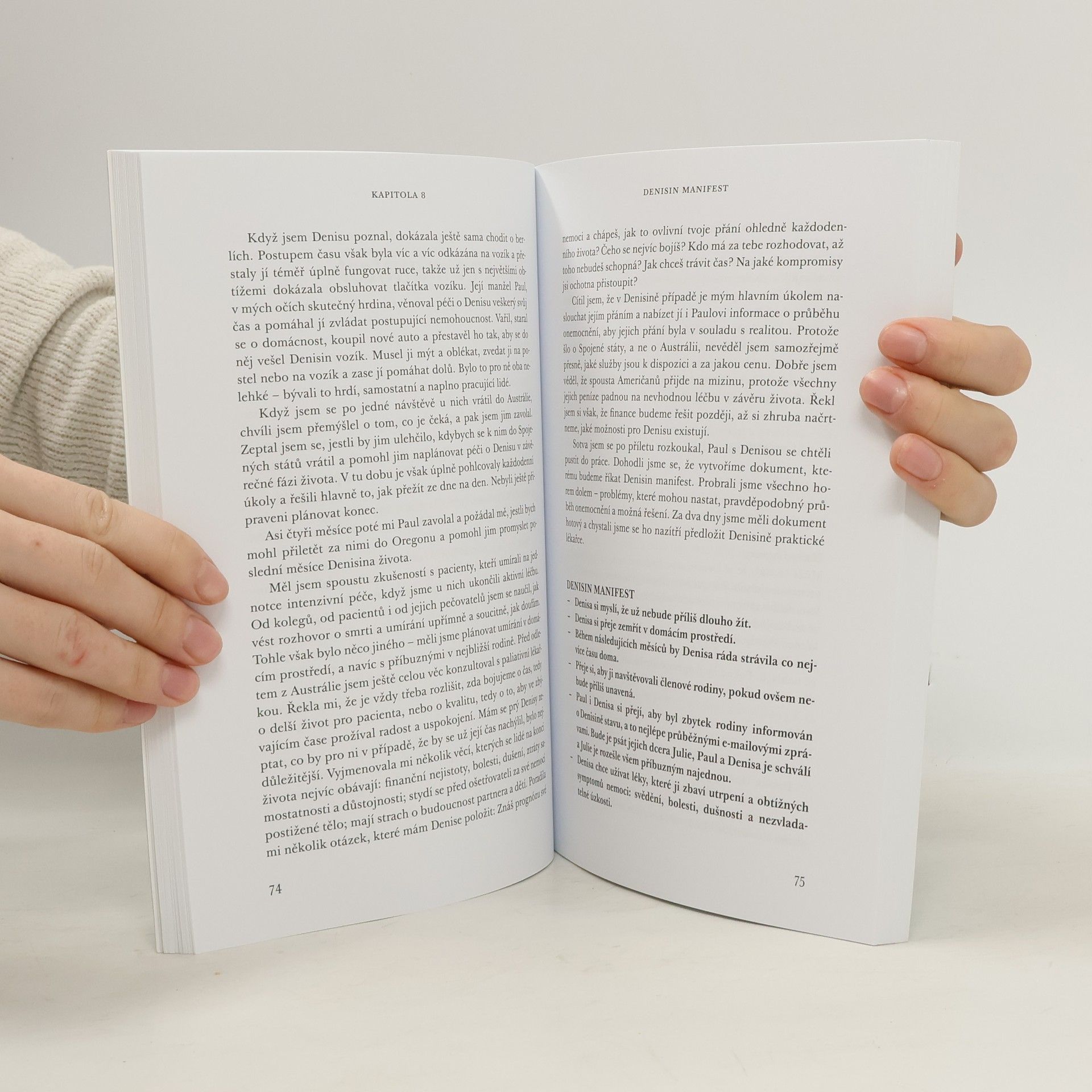Respektovaný australský anesteziolog je autorem pozoruhodné knihy. S odborným vhledem i milým humorem připomíná, že lidé – všichni lidé – stárnou a umírají. Podivuje se, jak je možné, že tato prostá skutečnost pořád lidstvo překvapuje. Dodává odvahu k tomu, abychom se připravili na slábnutí a odcházení našich rodičů a starých blízkých, ale i sebe samých. Přímo a bez velkých okolků nám důrazně připomíná, že není nikdo ani nic, kdo to za nás lépe zařídí. Nemocnice, natož jednotky intenzivní péče, rozhodně nejsou pro staré a umírající lidi vhodné prostředí. Autor pracuje s konkrétními příběhy, na nichž to jasně dokládá, a třebaže píše o umírání a smrti hodně zostra, jeho kniha je přívětivá a okouzlující.