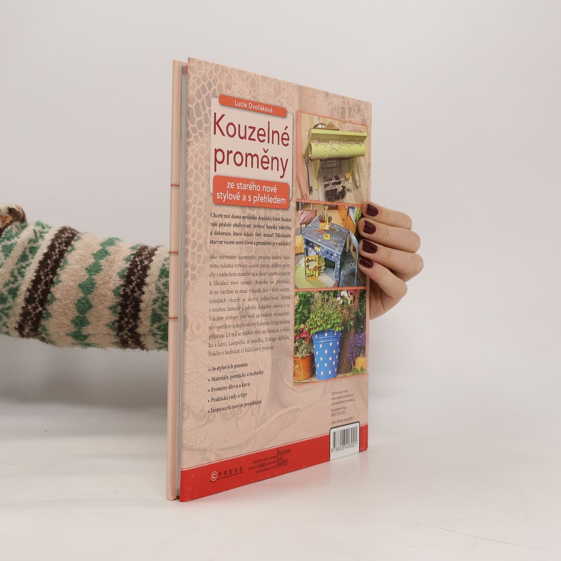 Ze starého nové - stylově a s přehledem. Chcete mít doma nevšední doplňky, které budou vaši přátelé obdivovat? Stylové kousky nábytku a dekorace, které nikdo jiný nemá? Vdechněte starým věcem nový život a proměňte je v unikáty. Jako mávnutím kouzelného proutku budete vlastníma rukama vytvářet úžasné patiny, efektní povrchy s nádechem starodávna a dávat věcem určeným k likvidaci nový rozměr. Autorka vás přesvědčí, že ne všechno se musí vyhodit, že i v těch nejobyčejnějších věcech se skrývá kouzlo, které s trochou fantazie a odvahy dokážete objevit i vy. Všechny projekty jsou srozumitelně vysvětleny a doprovázeny bohatou fotografickou přílohou. - 35 jedinečných proměn - Materiály, pomůcky a techniky - Proměny dřeva a kovu - Praktické rady a tipy - Inspirace k novým projektům