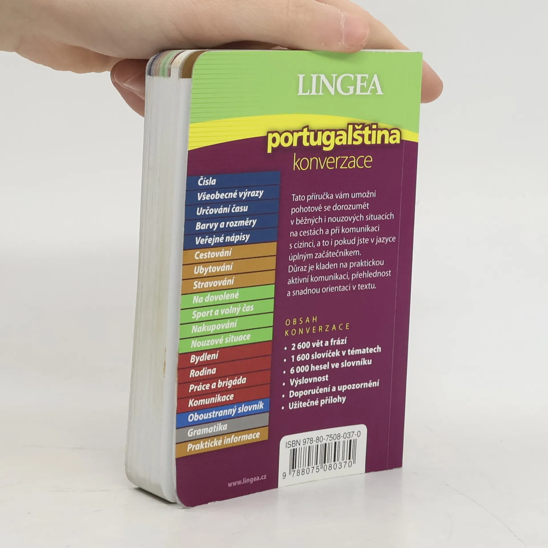 Ideální konverzace pro cesty do Portugalska i Brazílie, se spoustou užitečných poznámek a upozornění. Jako jediná současná příručka zachycuje nová pravidla platná od 1. 1. 2010. Součástí je i oboustranný slovník s 6000 hesly.