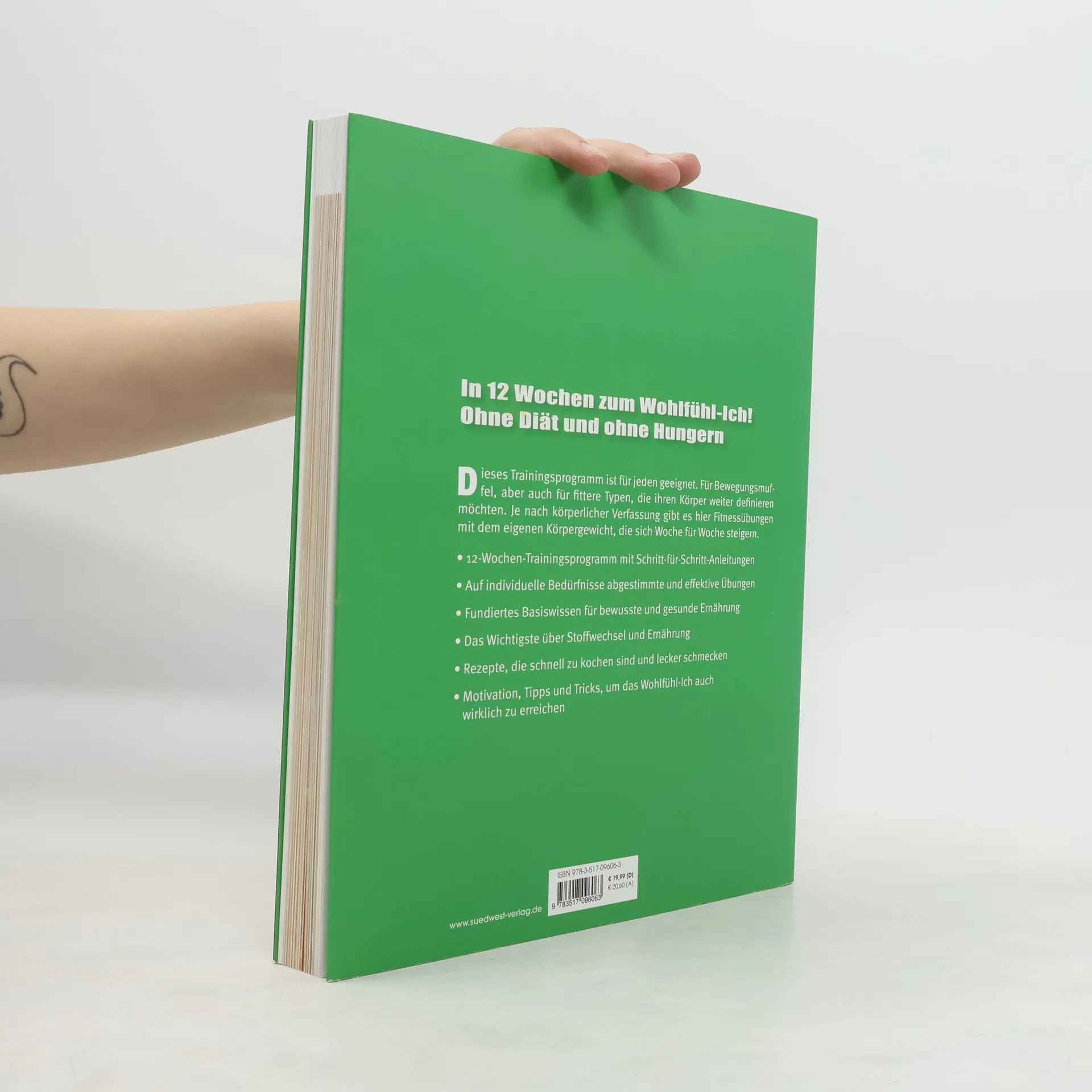Der neue Bestseller mit Matthias Steiner In diesem 12 Wochen-Programm zeigen Inge und Matthias Steiner Übungen mit dem eigenen Körpergewicht. Pro Woche gibt es 3 Trainingseinheiten à 20 Minuten für Einsteiger oder Menschen die übergewichtig sind, für Menschen, die bereits Sport gemacht haben, und für Geübte. Im zweiten Teil werden zunächst „gute“ und „schlechte“ Lebensmittel vorgestellt. Der Rezeptteil bietet einfache Gerichte mit max. 30 Minuten Zubereitungsdauer. Ausstattung: ca. 200 Farbfotos; ca. 200 Farbfotos