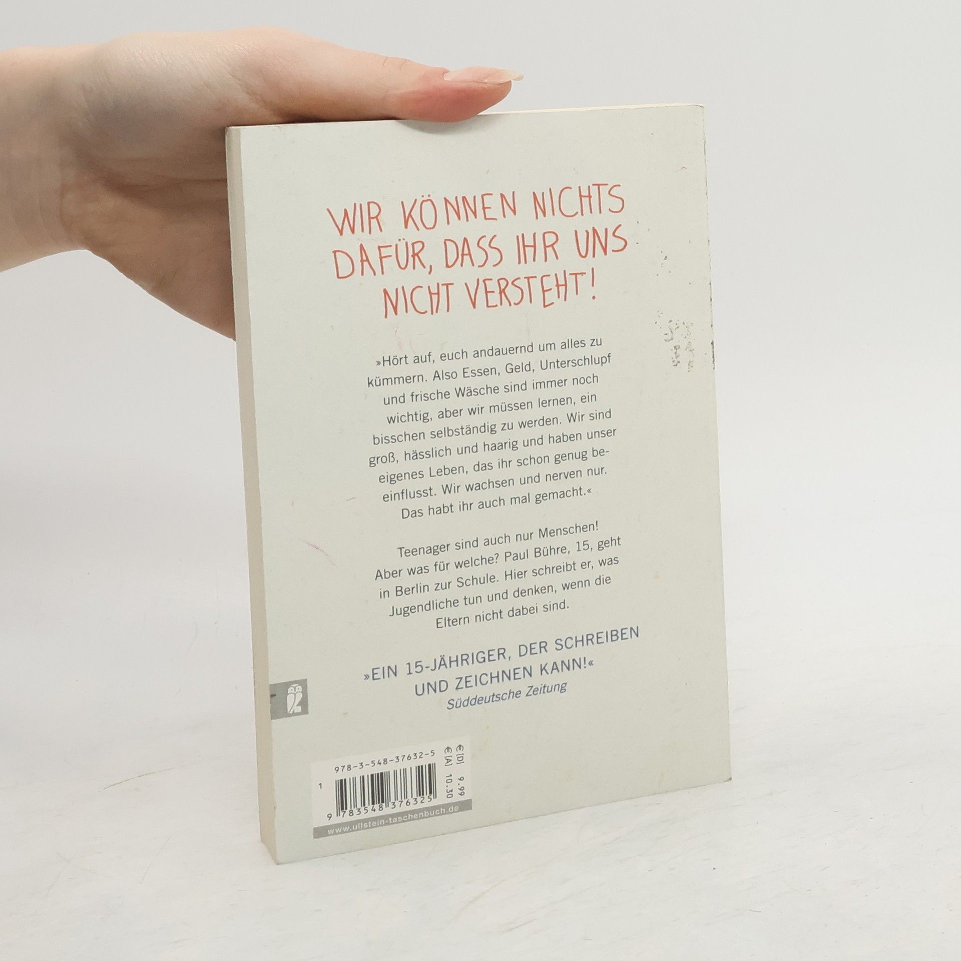 „Hört auf, euch andauernd um alles zu kümmern. Also Essen, Geld, Unterschlupf und frische Wäsche sind immer noch wichtig, aber wir müssen lernen, ein bisschen selbständig zu werden. Wir sind groß, hässlich und haarig und haben unser eigenes Leben, das ihr schon genug beeinflusst. Wir wachsen und nerven nur. Das habt ihr auch mal gemacht.“ Teenager sind auch nur Menschen! Aber was für welche? Paul Bühre, 15, geht in Berlin zur Schule. Hier schreibt er, was Jugendliche tun und denken, wenn die Eltern nicht dabei sind.