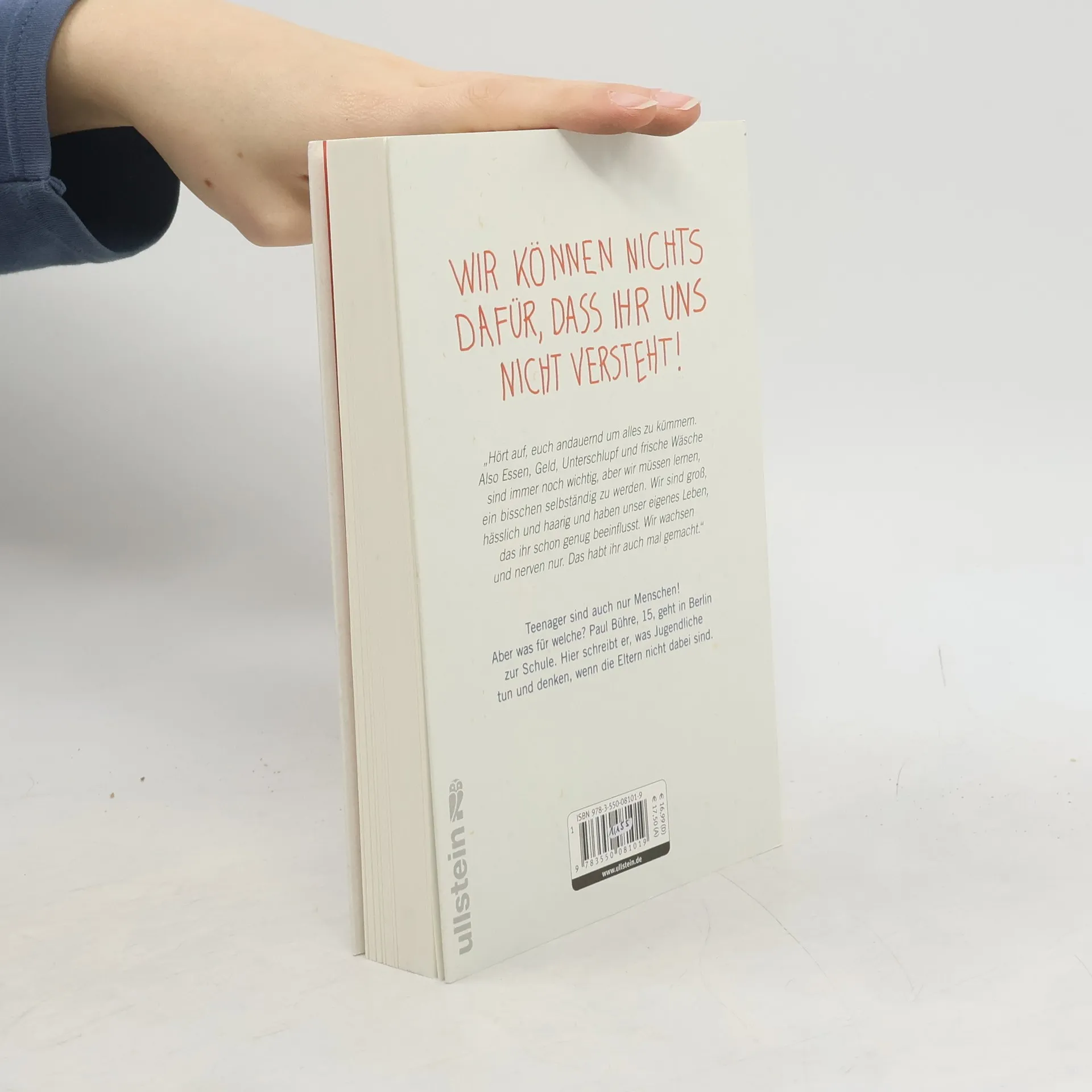 Teenager sind auch nur Menschen! Aber was für welche? Paul Bühre, 15, geht in Berlin zur Schule. Hier schreibt er, was Jugendliche tun und denken, wenn die Eltern nicht dabei sind. Konsumorientiert, pornographieverdorben und jederzeit bereit, das Geschenk von Oma gegen Gras oder Wodka-Energy einzutauschen? Bisher kennen wir den Pubertätsalltag hauptsächlich aus der Sicht von verunsicherten Eltern, überlasteten Lehrern oder gar Familientherapeuten. Jetzt gewährt erstmals ein 15-Jähriger Einblick in das, was ihm und seiner Generation wichtig ist. Er erzählt von Computerspielen, Unterhosenmoden, Mädchenkleidung, Schüleraustausch, Verliebtsein in Zeiten des Internets und diesen Momenten, in denen alles zu viel wird. Und von Eltern, die ständig nur das Beste wollen, aber damit genau das Gegenteil erreichen.