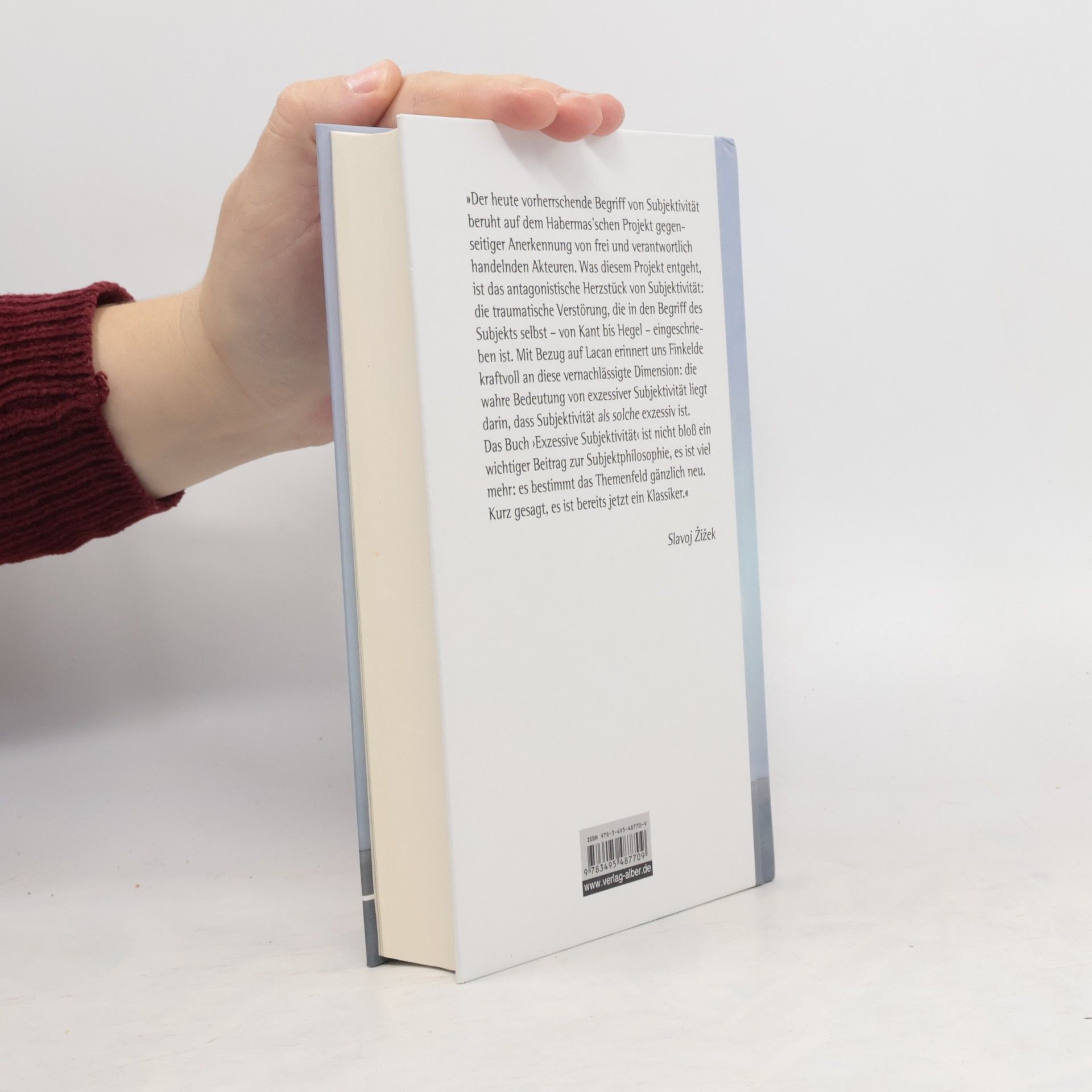 "'Der heute vorherrschende Begriff von Subjektivität beruht auf dem Habermas'schen Projekt gegenseitiger Anerkennung von frei und verantwortlich handelnden Akteuren. Was diesem Projekt entgeht, ist das antagonistische Herzstück von Subjektivität: die traumatische Verstörung, die in den Begriff des Subjekts selbst -- von Kant bis Hegel -- eingeschrieben ist. Mit Bezug auf Lacan erinnert uns Finkelde kraftvoll an diese vernachlässigte Dimension: die wahre Bedeutung von exzessiver Subjektivität liegt darin, dass Subjektivität als solche exzessiv ist. Das Buch Exzessive Subjektivität ist nicht bloß ein wichtiger Beitrag zur Subjektphilosophie, es ist viel mehr: es bestimmt das Themenfeld gänzlich neu. Kurz gesagt, es ist bereits jetzt ein Klassiker' (Slavoj Žižek)" --Back cover.