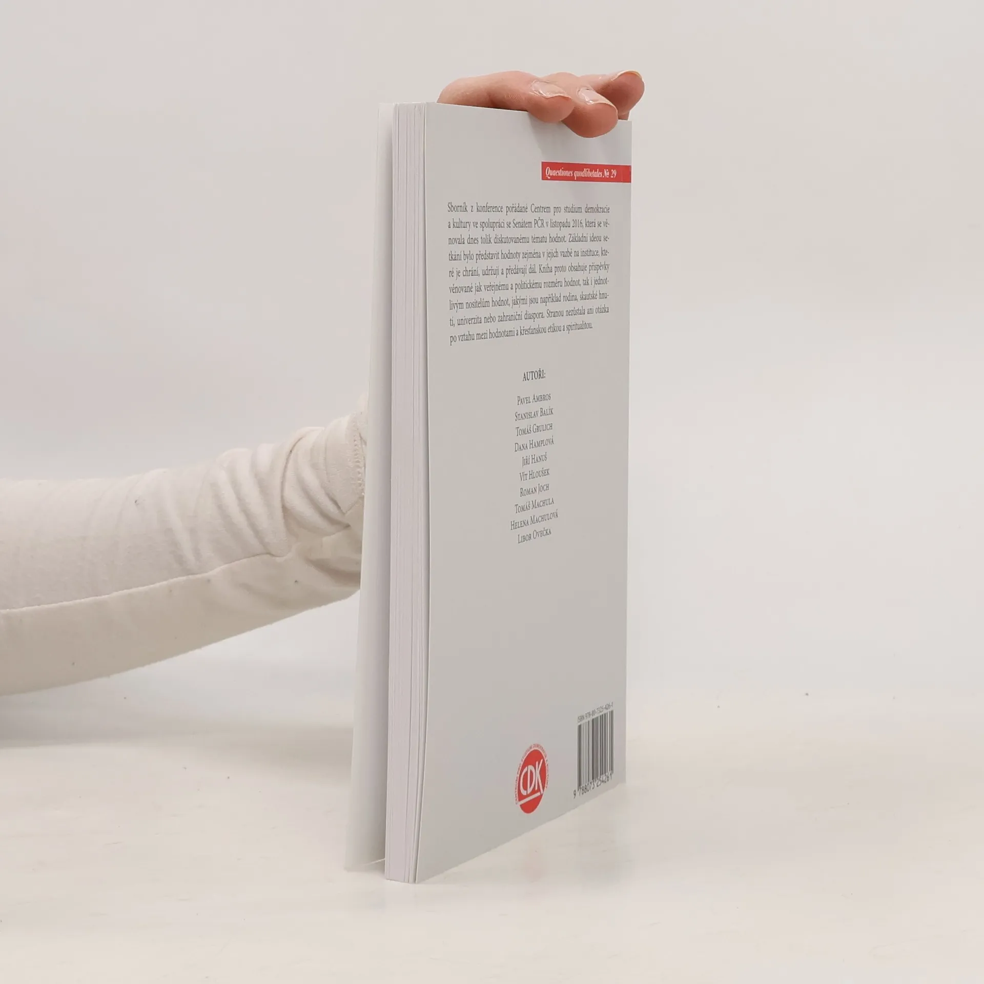 Sborník z konference pořádané Centrem pro studium demokracie a kultury ve spolupráci se Senátem PČR v listopadu 2016, která se věnovala dnes tolik diskutovanému tématu hodnot. Základní ideou setkání bylo představit hodnoty zejména v jejich vazbě na instituce, které je chrání, udržují a předávají dál. Kniha proto obsahuje příspěvky věnované jak veřejnému a politickému rozměru hodnot, tak i jednotlivým nositelům hodnot, jakými jsou například rodina, skautské hnutí, univerzita nebo zahraniční diaspora. Stranou nezůstala ani otázka po vztahu mezi hodnotami a křesťanskou etikou a spiritualitou.