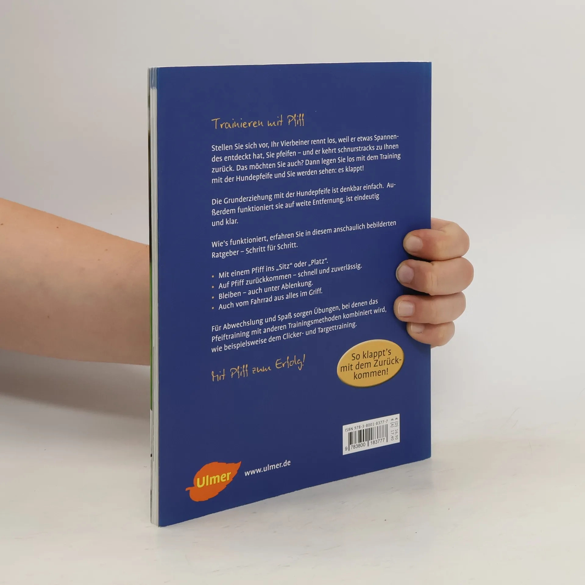 Sie haben es satt, Ihrem Hund auf der Hundewiese lauthals hinterher zu rufen? Dann konditionieren Sie ihn doch auf die Hundepfeife. Wie das funktioniert, erfahren Sie in diesem anschaulich bebilderten Ratgeber - Schritt für Schritt. Sie werden sehen: Die Grunderziehung mit der Hundepfeife ist nicht schwerer als mit Wortkommandos. Dafür funktioniert sie auf weitere Entfernung, ist unmissverständlich und klar. Auch bei Problemen mit dem Rückruf kann die Einführung eines Rückpfiff-Signals hilfreich sein. Das Training mit der Hundepfeife: eine Alternative für alle Hundehalter, die am Grundgehorsam ihres Hundes arbeiten wollen.