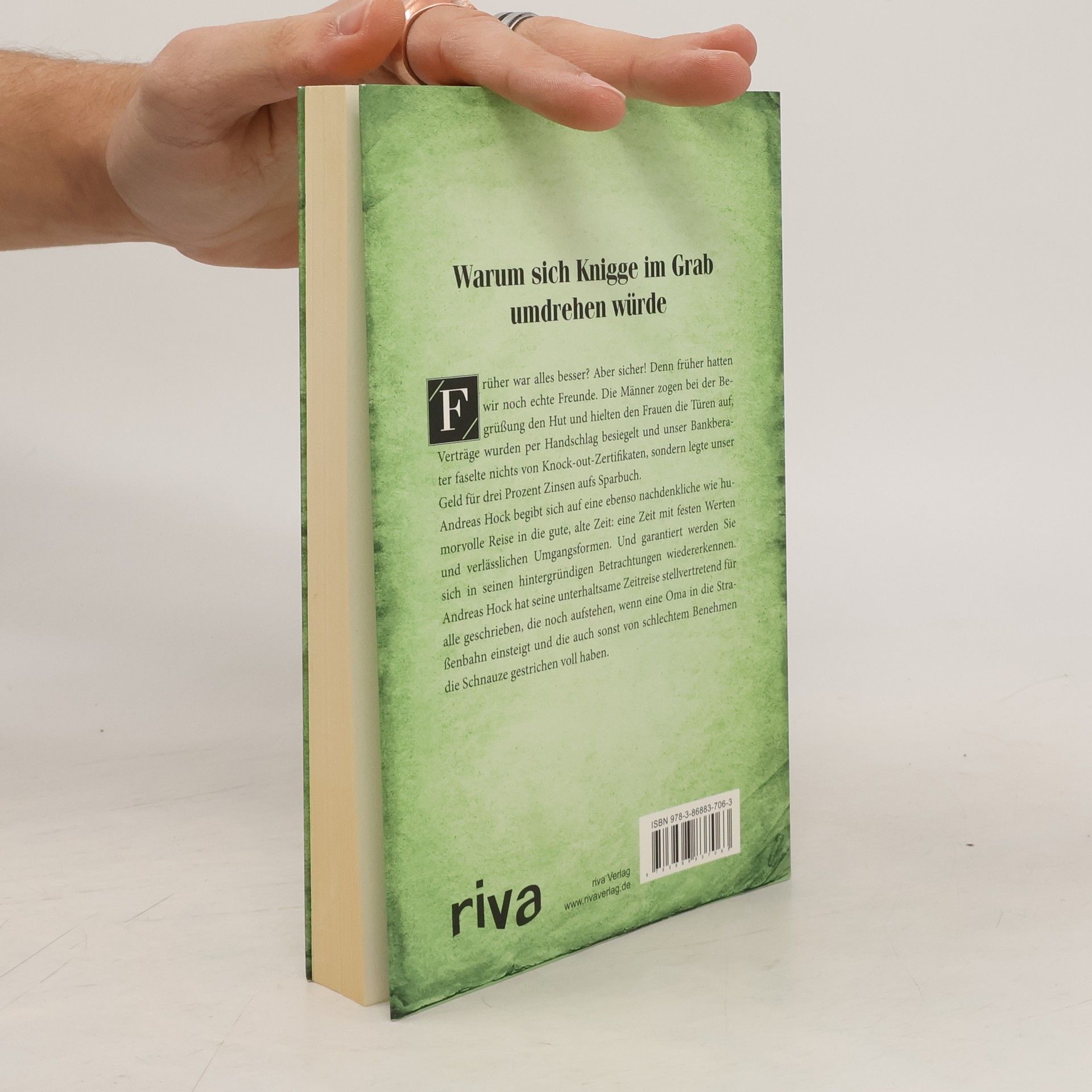 Früher war alles besser? Aber sicher! Denn früher hatten wir noch echte Freunde. Die Männer hielten den Frauen die Türen auf, Verträge wurden per Handschlag besiegelt und unser Bankberater faselte nichts von Knock-out-Zertifikaten, sondern legte unser Geld für drei Prozent Zinsen aufs Sparbuch. Andreas Hock, Autor des Spiegel-Bestsellers Bin ich denn der Einzigste hier, wo Deutsch kann?, begibt sich auf eine humorvolle und nachdenkliche Reise in die gute, alte Zeit: eine Zeit mit festen Werten und verlässlichen Umgangsformen. Seine Betrachtungen sind komisch, hintergründig und melancholisch zugleich. Ein Buch für alle, die das gemeinsame Mittagessen oder den Fernsehabend im Kreis der ganzen Familie vermissen; für alle, die noch aufstehen, wenn eine Oma in die Straßenbahn einsteigt – und für alle, die von schlechtem Benehmen die Schnauze voll haben. Mit großem Knigge-Test!