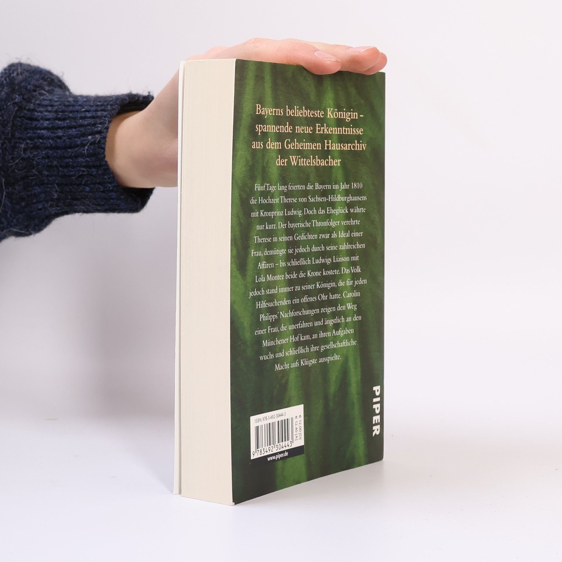 Fünf Tage lang feierten die Bayern im Jahr 1810 die Hochzeit Therese von Sachsen-Hildburghausens mit Kronprinz Ludwig. Doch das Eheglück währte nur kurz. Der bayerische Thronfolger verehrte Therese in seinen Gedichten zwar als Ideal einer Frau, demütigte sie jedoch durch seine zahlreichen Affären – bis schließlich Ludwigs Affäre mit Lola Montez beide die Krone kostete. Das Volk jedoch stand immer zu seiner Königin, die für jeden Hilfesuchenden ein offenes Ohr hatte. Carolin Philipps Nachforschungen zeigen den Weg einer Frau, die unerfahren und ängstlich an den Münchener Hof kam, an ihren Aufgaben wuchs und schließlich ihre gesellschaftliche Macht aufs Klügste ausspielte.