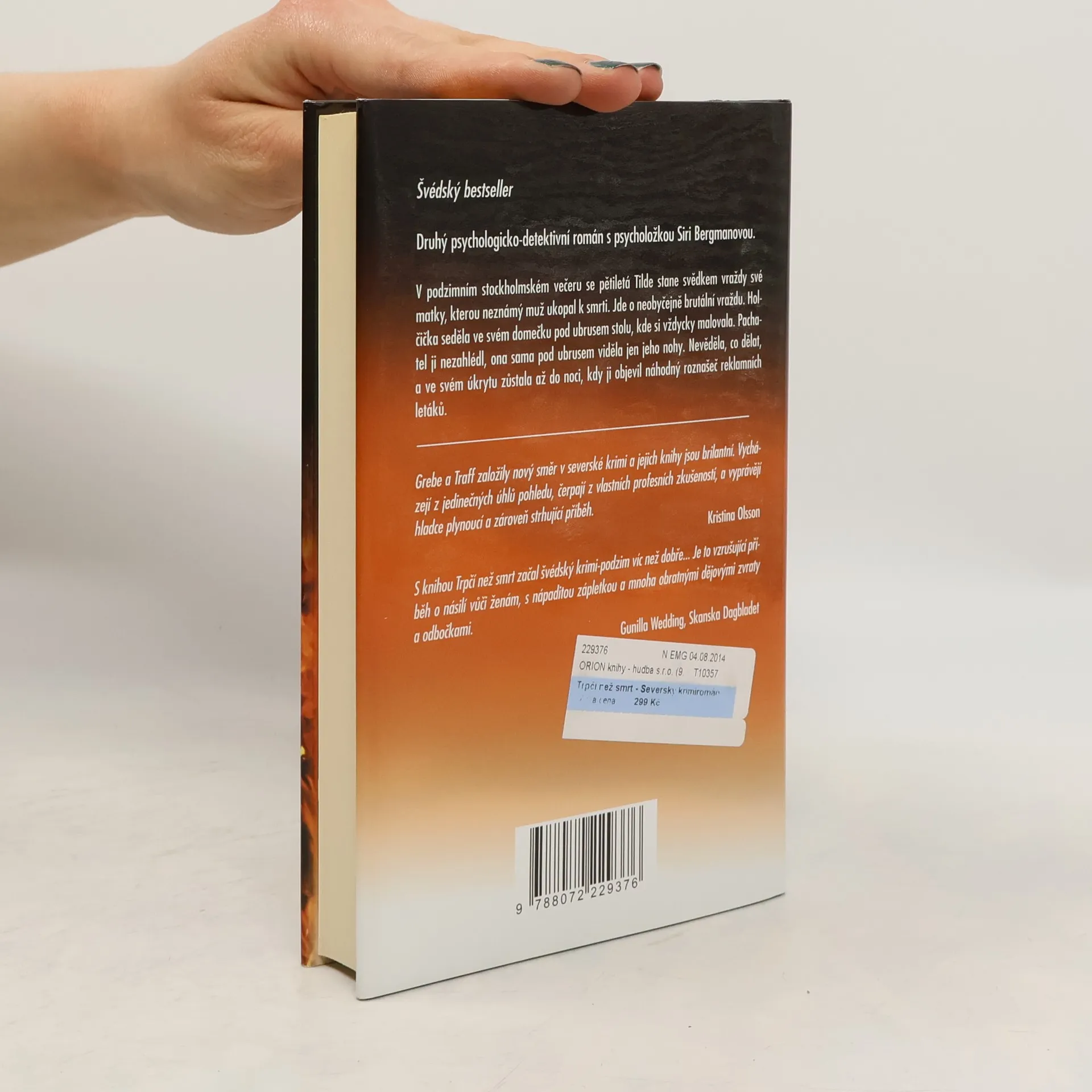 Severský krimiromán Druhý psychologicko-detektivní román s psycholožkou Siri Bergmanovou. V podzimním stockholmském večeru se pětiletá Tilde stane svědkem vraždy své matky, kterou neznámý muž ukopal k smrti. Jde o neobyčejně brutální vraždu. Holčička seděla ve svém domečku pod ubrusem stolu, kde si vždycky malovala. Pachatel je nezahlédl, ona sama pod ubrusem viděla jen jeho nohy. Nevěděla, co dělat, a ve svém úkrytu zůstala až do noci, kdy ji objevil náhodný roznašeč reklamních letáků.