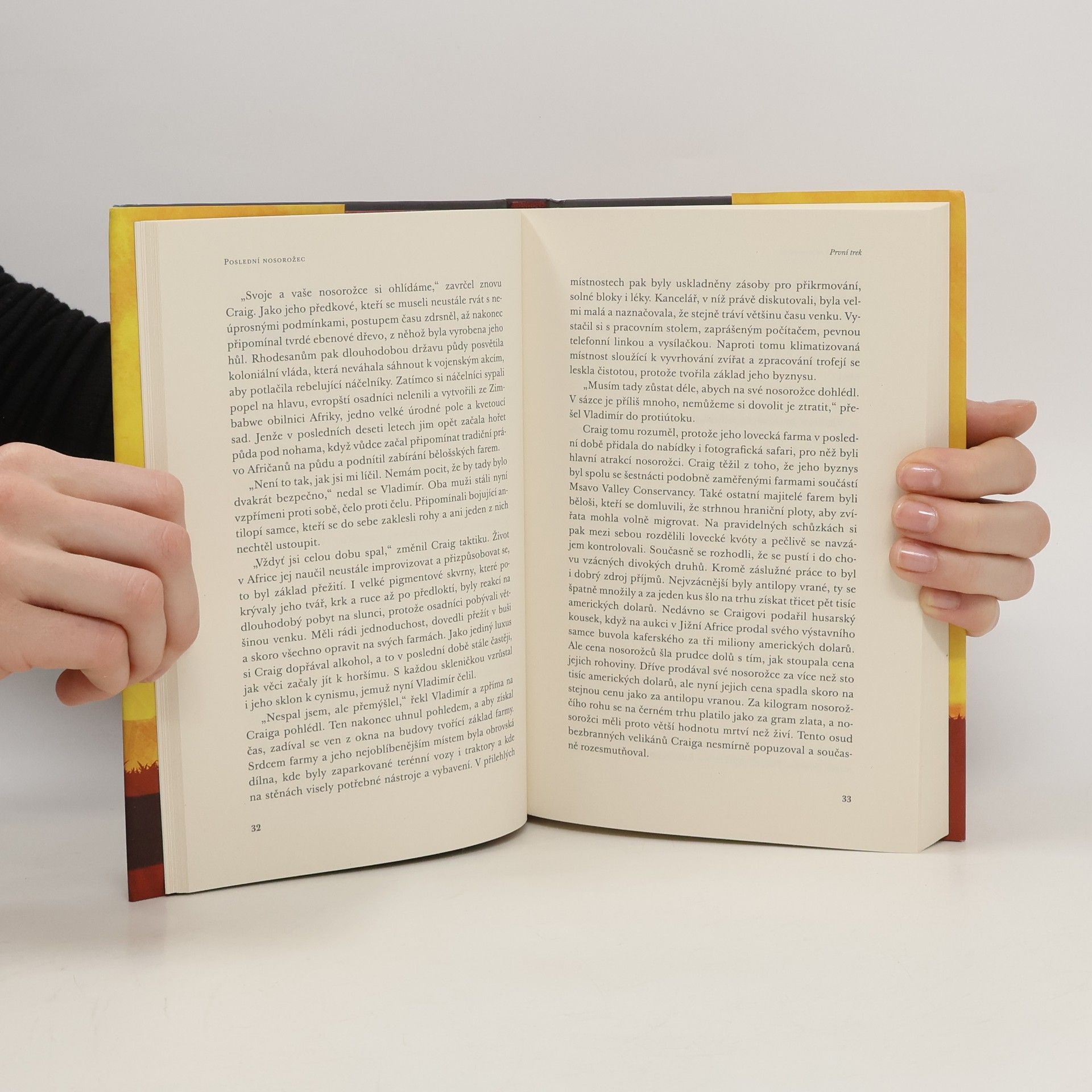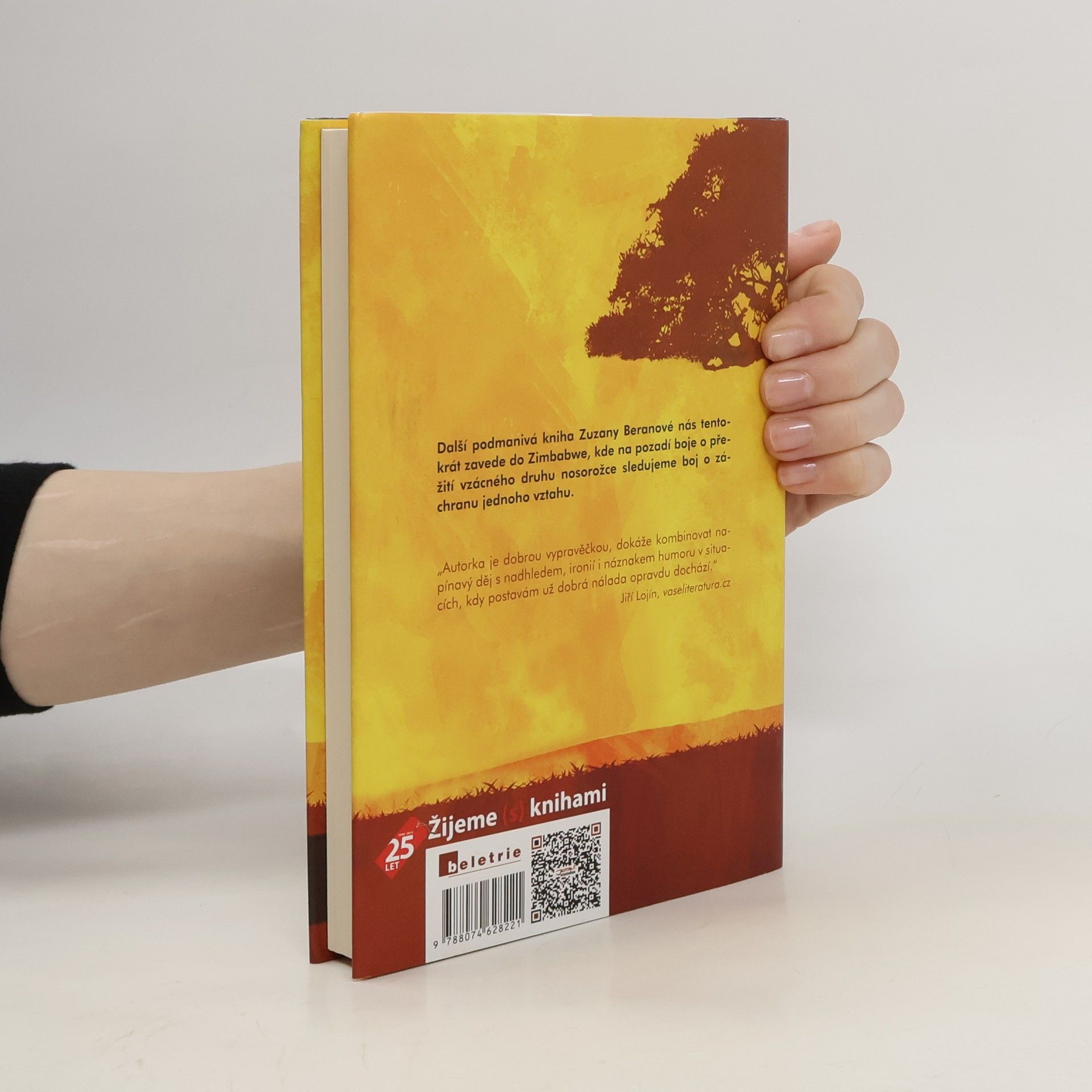Eva přijíždí do Zimbabwe se svým manželem Vladimírem, ošetřovatelem zvířat, který sem převáží poslední zdravý pár vzácných nosorožců bílých, jimž hrozí vyhynutí. Afrika je poslední záchranou také pro Evu, která si od exotického dobrodružství slibuje vyřešení svých problémů. Vladimír je však zcela pohlcen prací. V době epidemie cholery se Eva při pomoci nemocným sama nakazí, život jí zachrání místní lékař a z původně „profesionálního“ vztahu se nepozorovaně stává milenecký poměr. Vladimír si až příliš pozdě uvědomí, že Evu nenávratně ztratil. Balí si nejnutnější věci, včetně zbraně, a odhodlává se k absurdnímu plánu, který je v rozporu se vším, čemu doposud věřil. Dává mu však naději, že zachrání jak nosorožce, tak svůj vztah. Eva se však již dostala do bodu, z něhož není návratu. Další podmanivá kniha Zuzany Beranové nás tentokrát zavede do Zimbabwe, kde na pozadí boje o přežití vzácného druhu nosorožce sledujeme boj o záchranu jednoho vztahu.